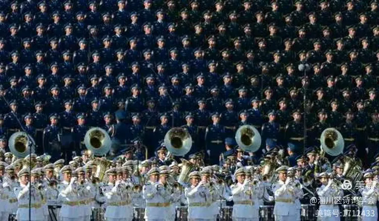 军威壮,军歌亮。长安街列阵,步履铿锵。空中护旗,银鹰亮相。国之重器轮番上,泱泱,看我大中华日益荣昌!
