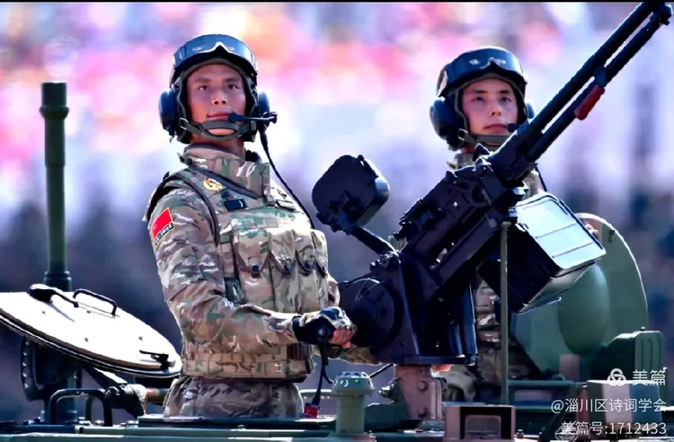九三亮剑惊寰宇,兵男女、铿锵健步。成行成列一刀裁,好威武、汉秦风度。 九三亮剑惊寰宇,哪装备、惹人眼目。高科其內化神奇,利器在、打狼镇虎。