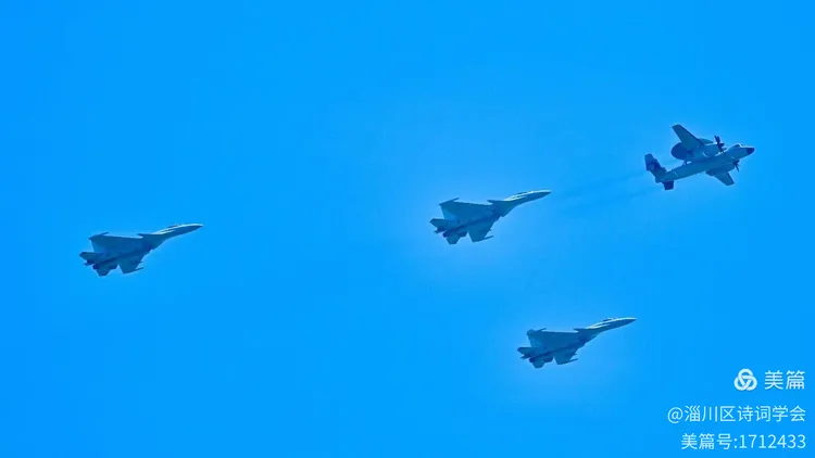 银鹰列阵破苍穹,似有惊雷振耳聋。