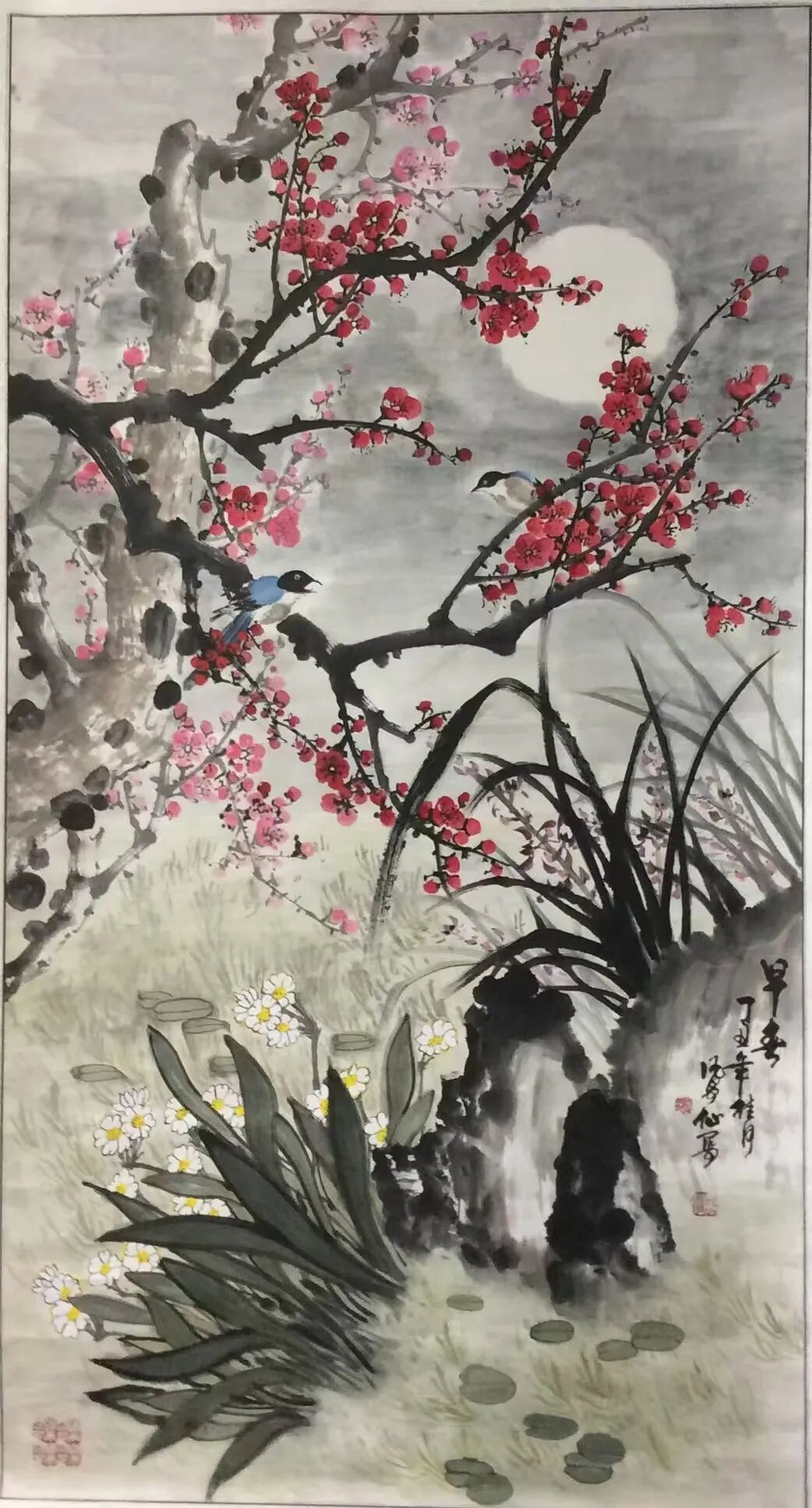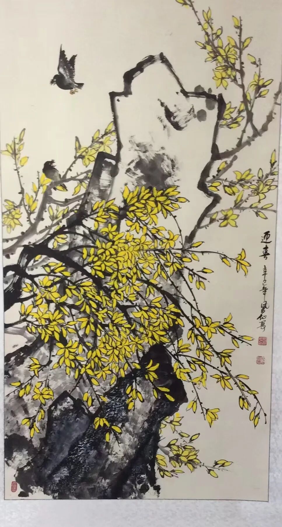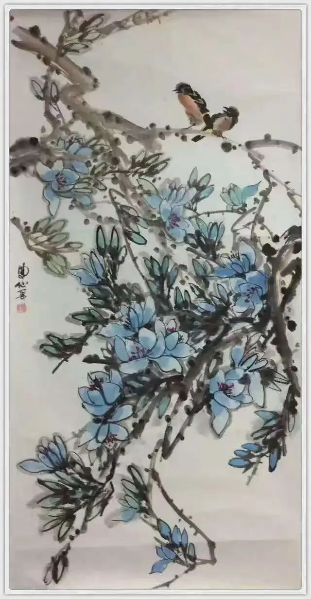 刘凤仙创作,师古而不泥古,继承不照搬,而是紧紧抓住自然界动植 物与人们生活、思想情感的某种联系给与强化表现。着重神、魂、韵的点画与描写,注意美与善的观念表达。用“移生动质"传达花鸟的生命力与其各不相同的特性,强调其“夺造化而移精神遐想"的怡情作用。通过对花鸟画的创作来表达自己的志趣、情操与精神生活,表达内在的思想与追求,缘物寄情,托物言志。