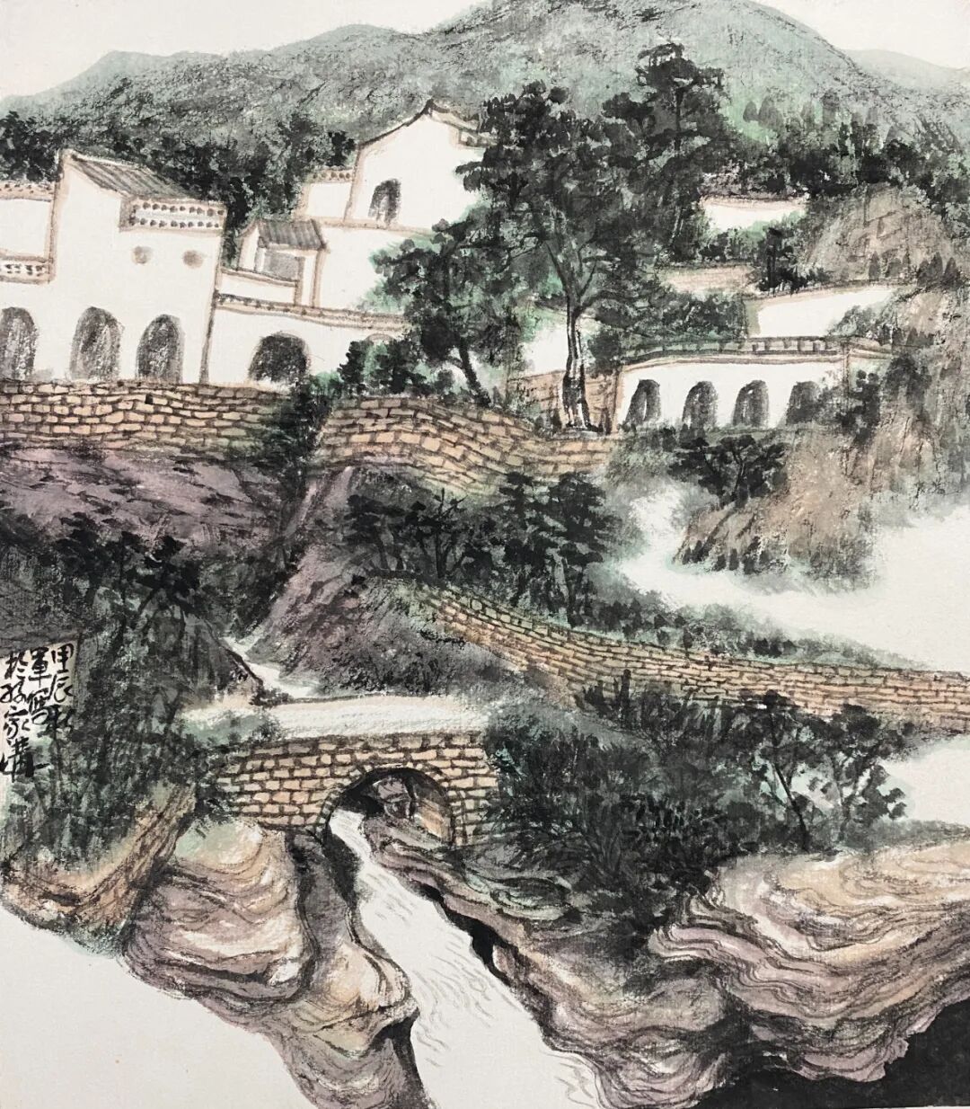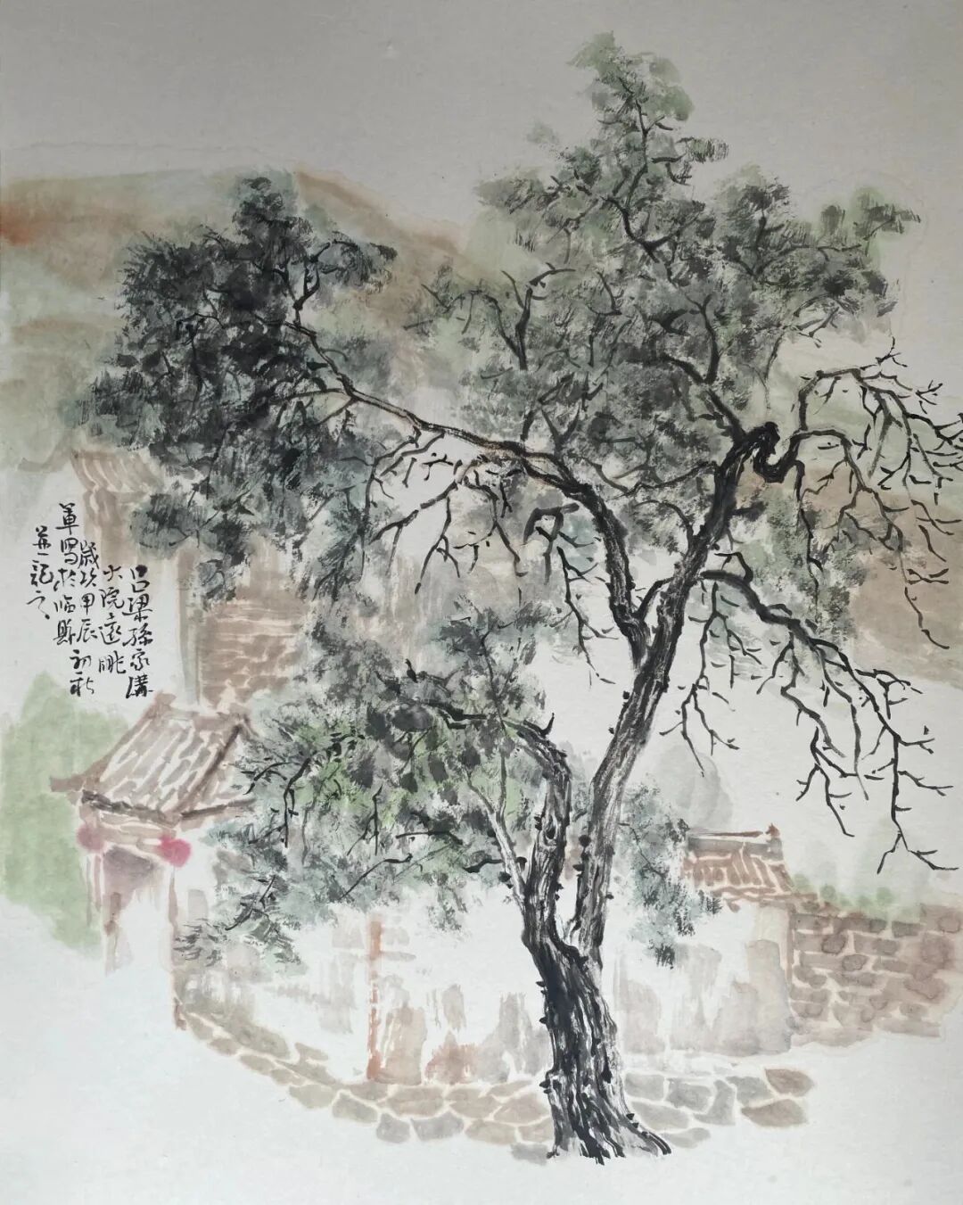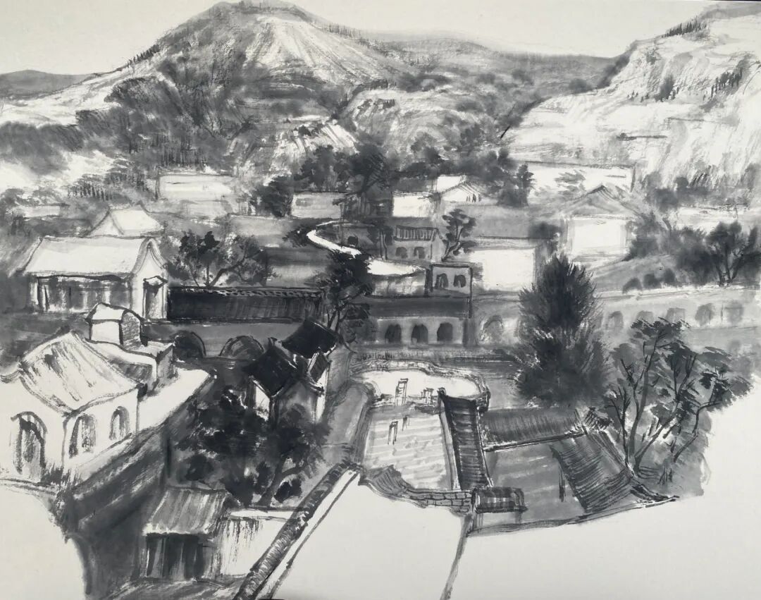《文革大院远眺》33×43cm纸本设色 2024 席军