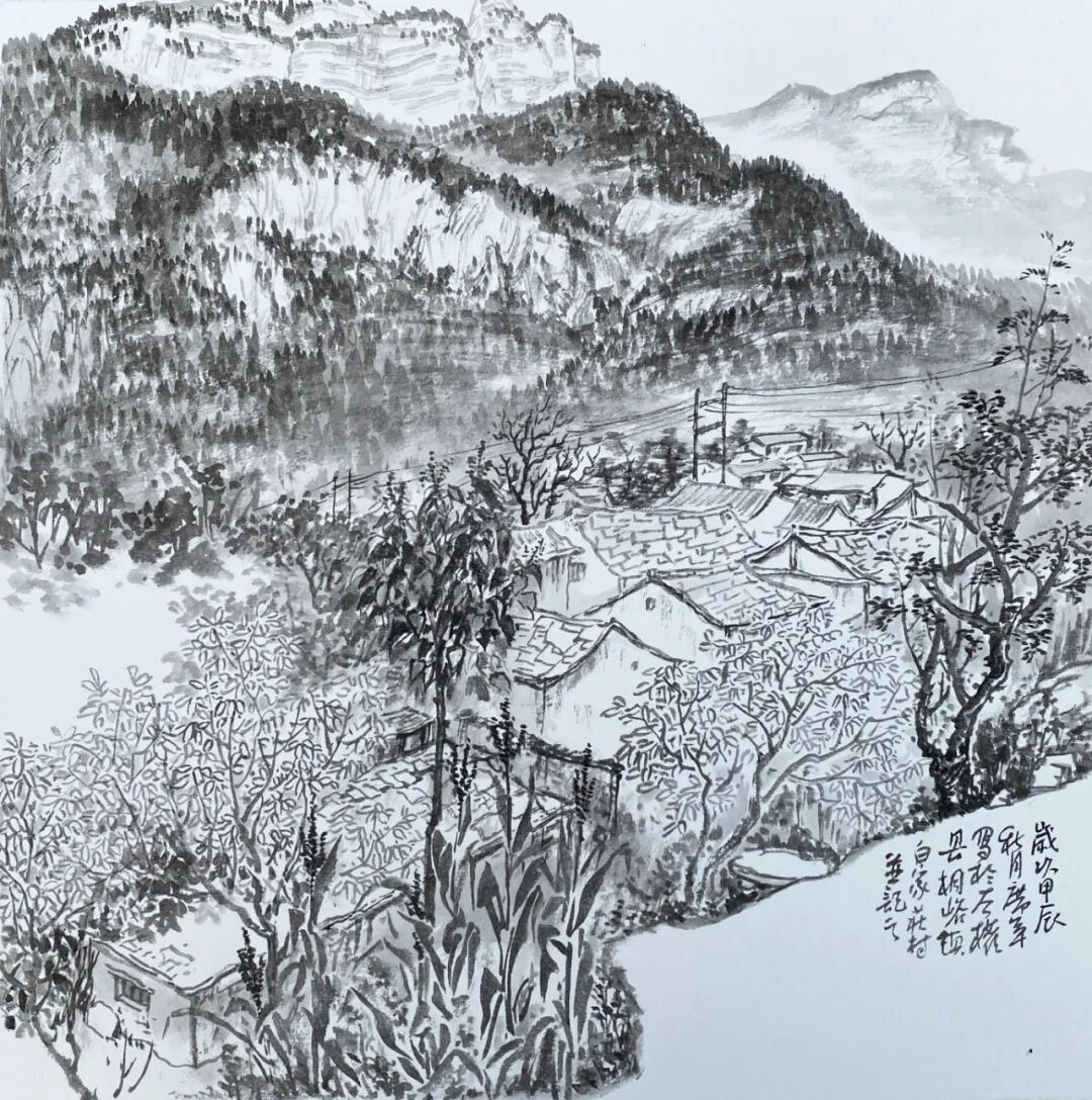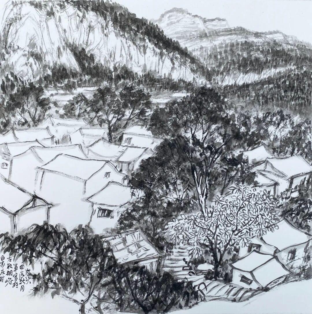 《白家庄村》50×50cm纸本水墨 2024 席军