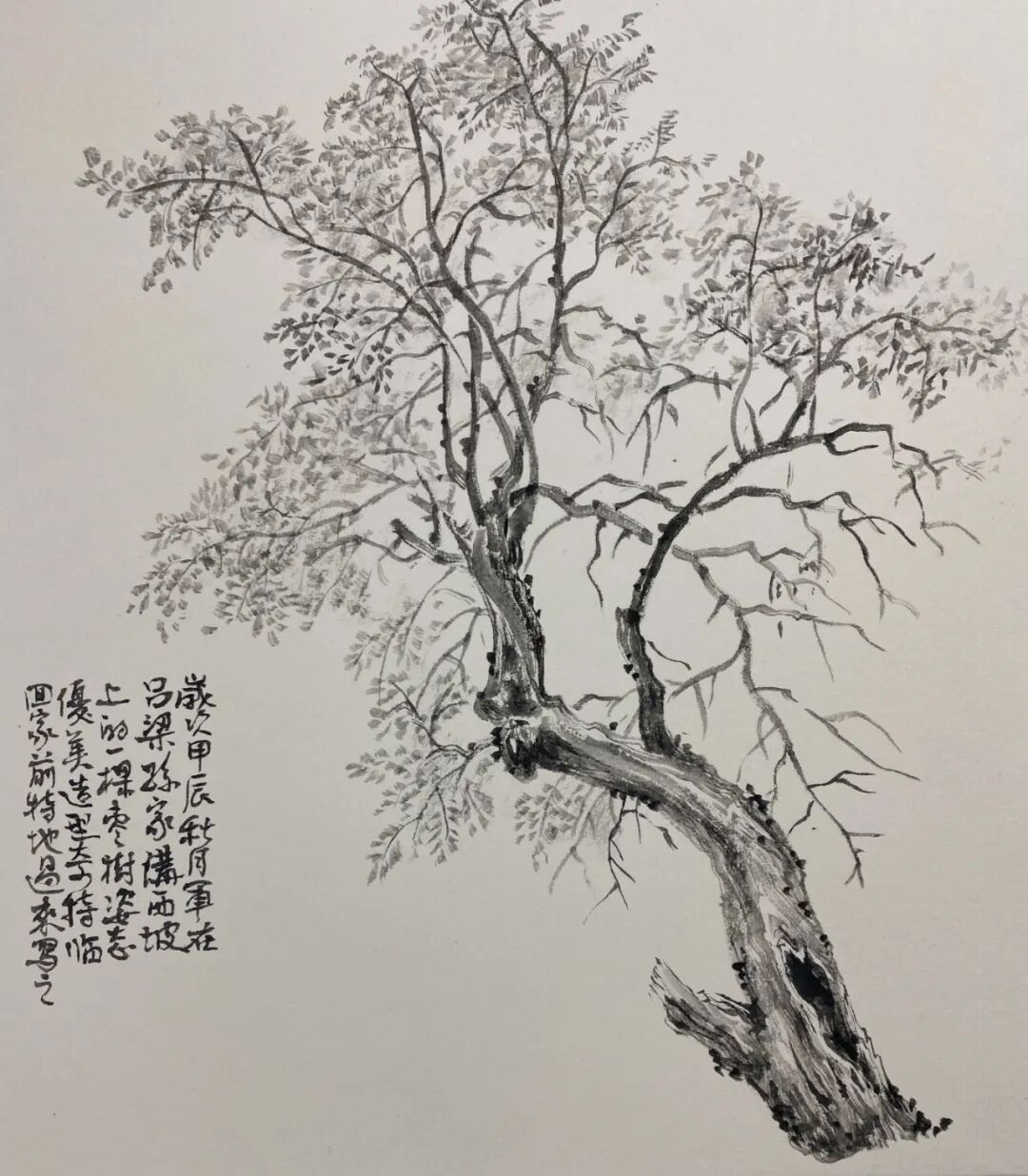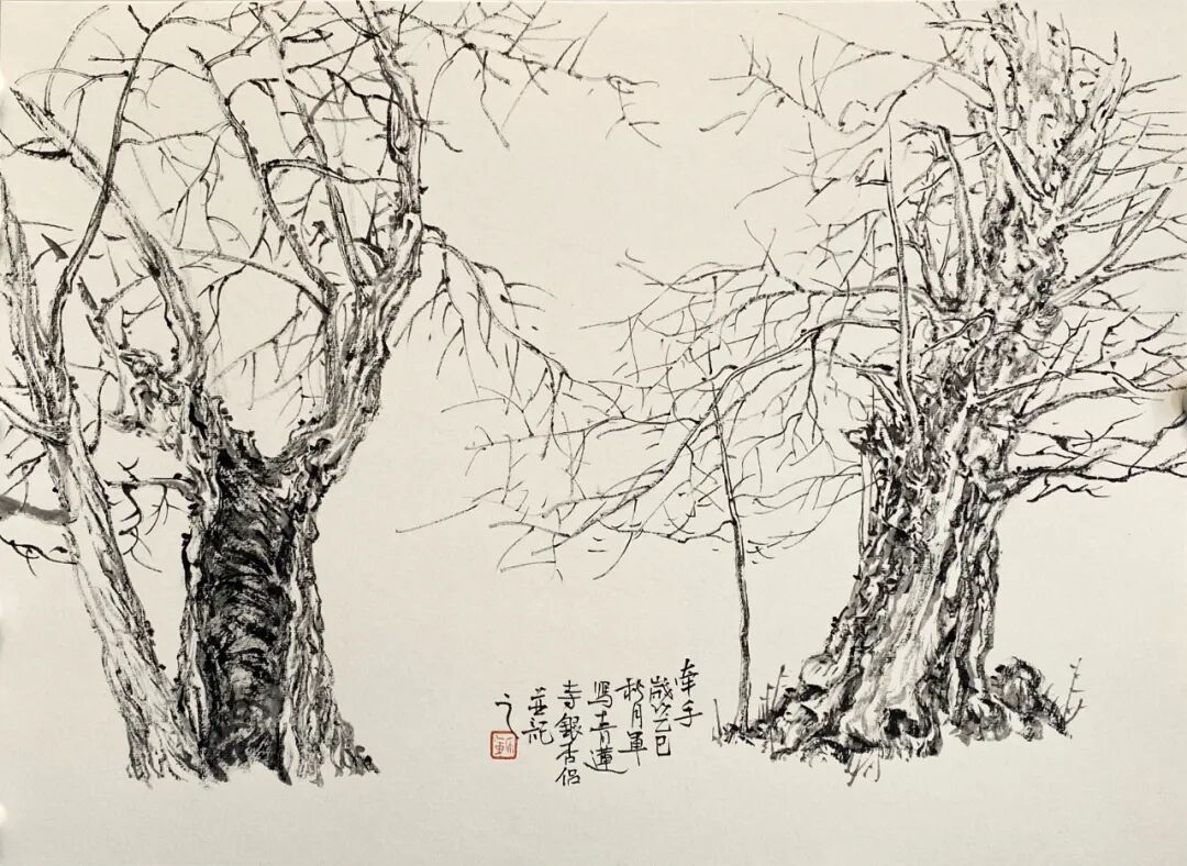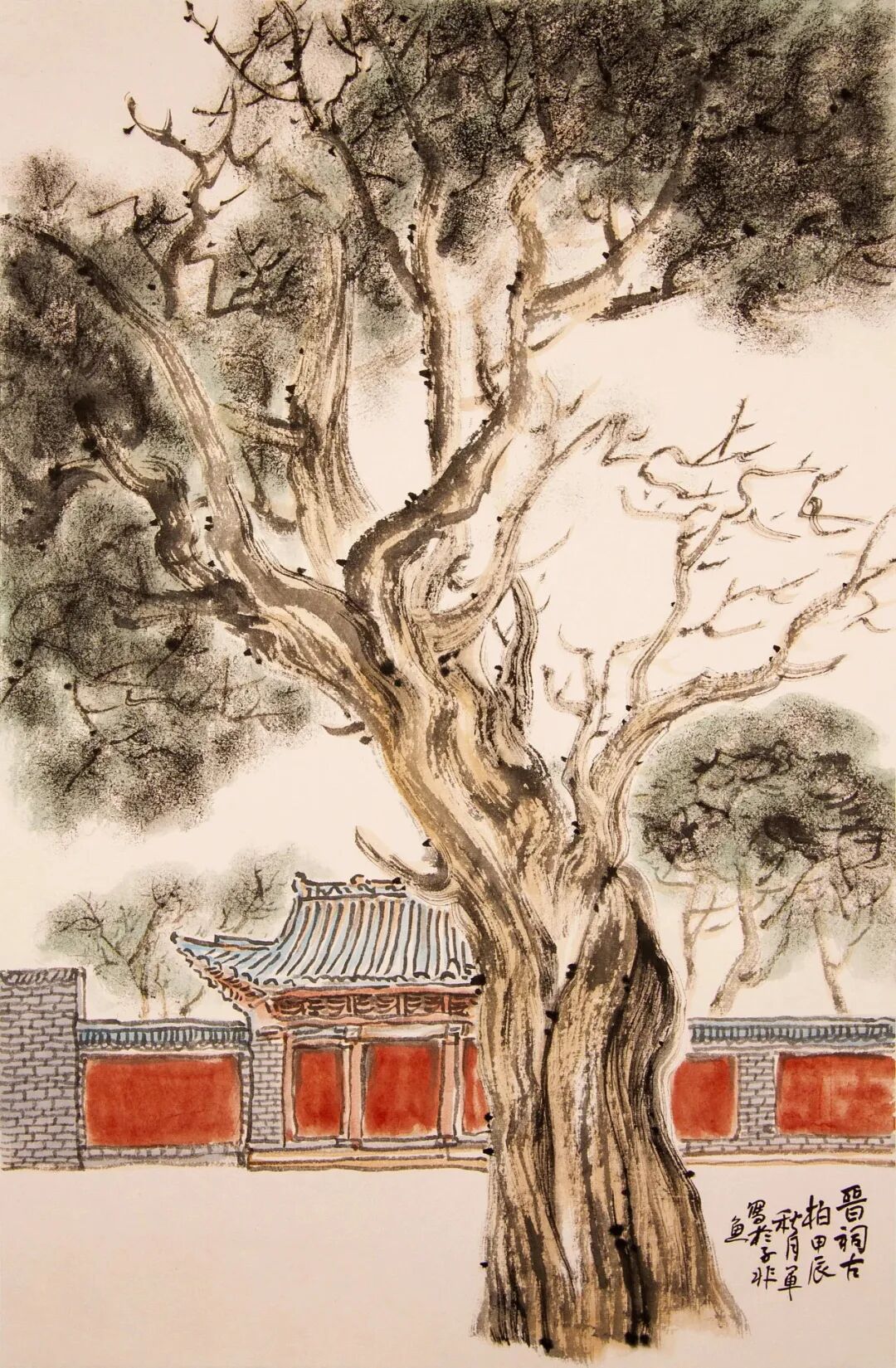 《晋祠古柏》68×45cm纸本设色 2024 席军