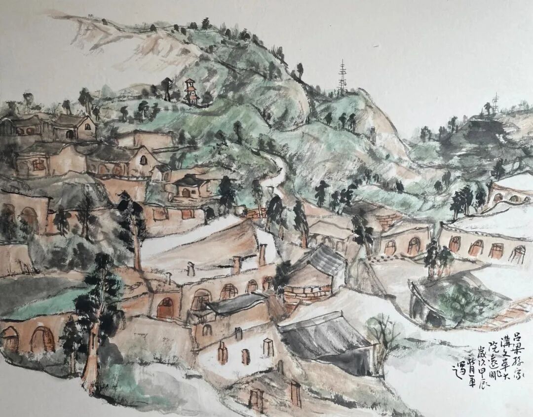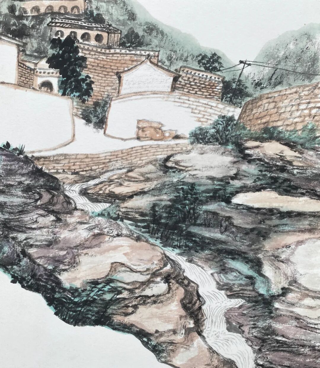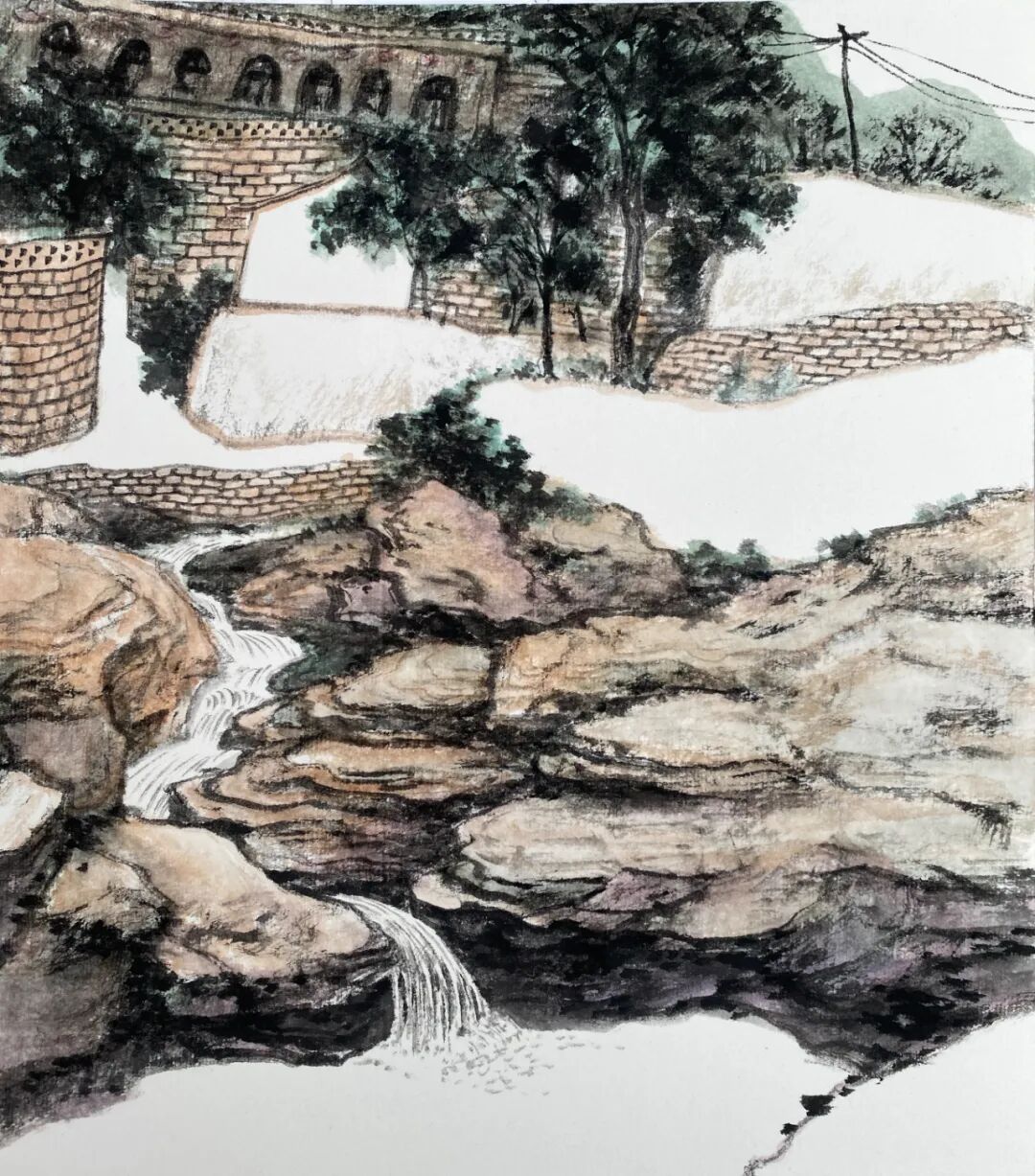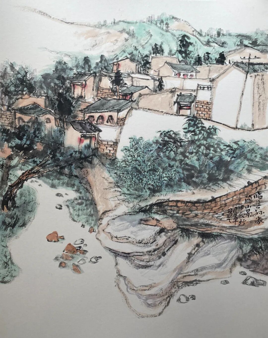 《临县孙家沟小景》33×43cm纸本设色 2024 席军