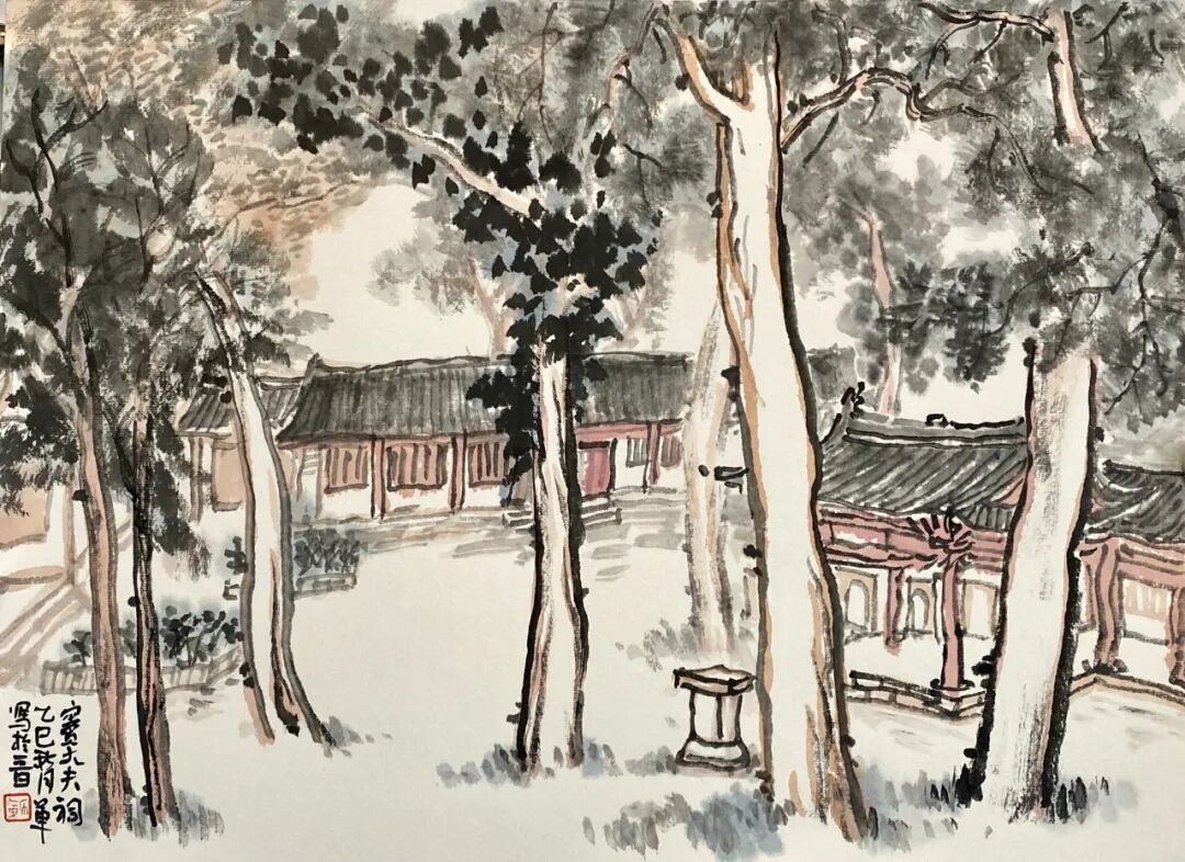 《窦大夫祠》34×45cm纸本设色 2025 席军