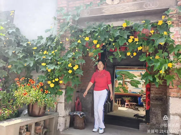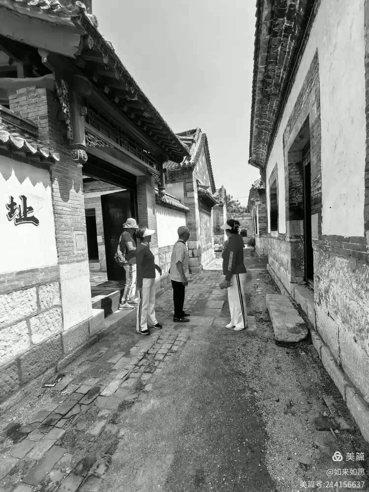 初秋正午暖阳天,漫步王家大院前。
