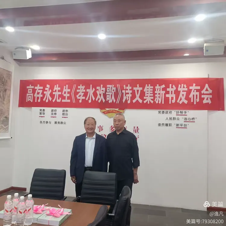 金秋时节,细雨绵绵,爽风阵阵,沁人心脾;秋日如歌,收获的季节,田间地头,累累硕果,满园飘香。2025年9月23日上午,一场别开生面的文坛盛会一一高存永先生《孝水欢歌》诗文集新书发布会,在淄川建材城强辉建陶公司的政协委员活动室隆重举行。淄川区政协和双杨镇的领导,淄川区诗词学会的领导和诗友们冒雨前往强辉公司,为新书发布会加油助力。