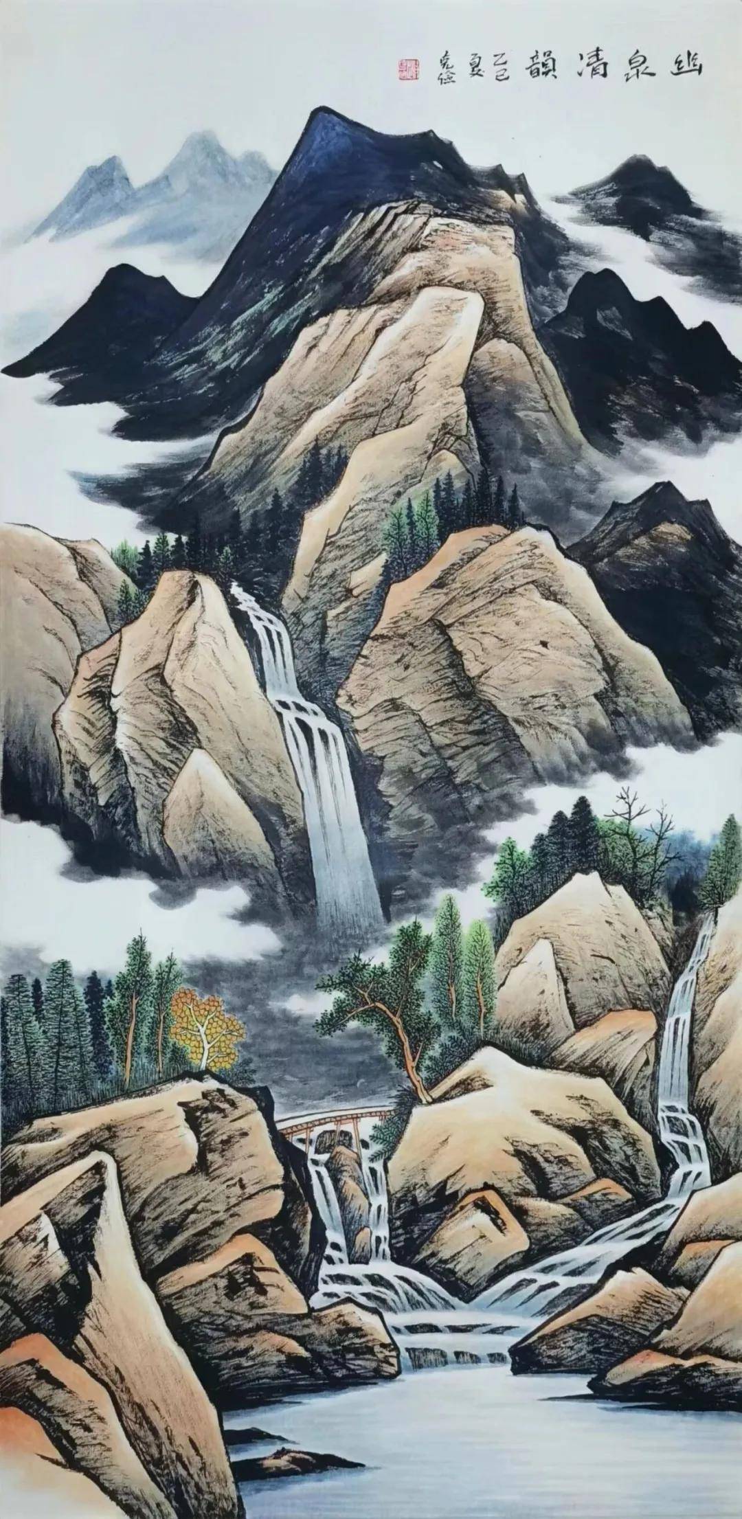 在他的作品中,我们既能看到北方山水的峭壁伟岸、粗粝雄奇,又能感受到南方山水的云水氤氲、清新秀丽。这种风格的形成源于他长期的艺术探索——从学习宋代范宽、李唐等大家的经典作品,到近现代徐悲鸿、李可染等大师的艺术理念,他都进行了深入研究和吸收。