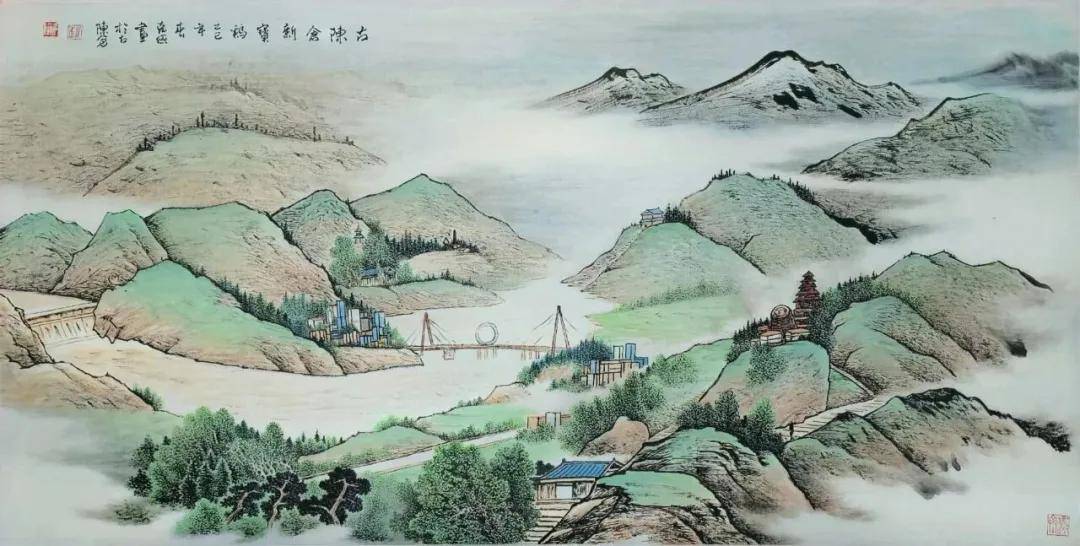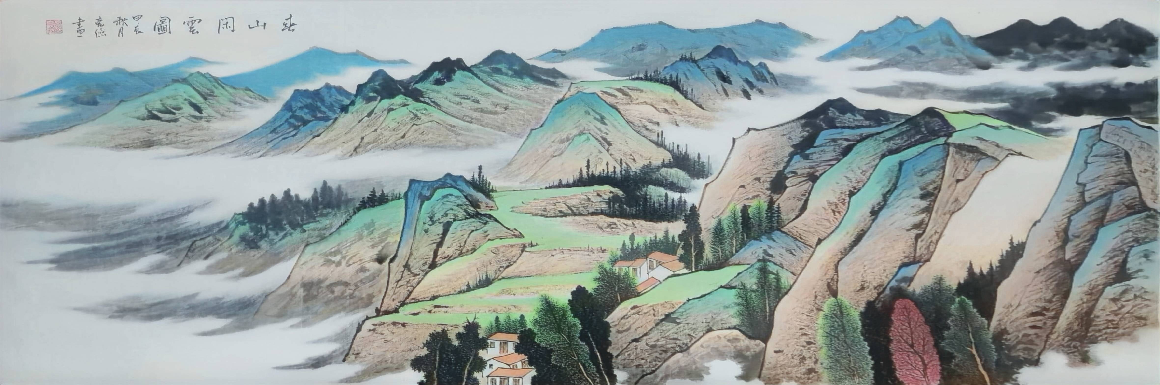 赵克俭先生的山水画作品最显著的特点在于他成功地将北方山水的雄奇豪放与南方山水的温润清雅融为一体。这种融合不是简单的技法叠加,而是基于对自然和艺术的深刻理解后的内在统一。