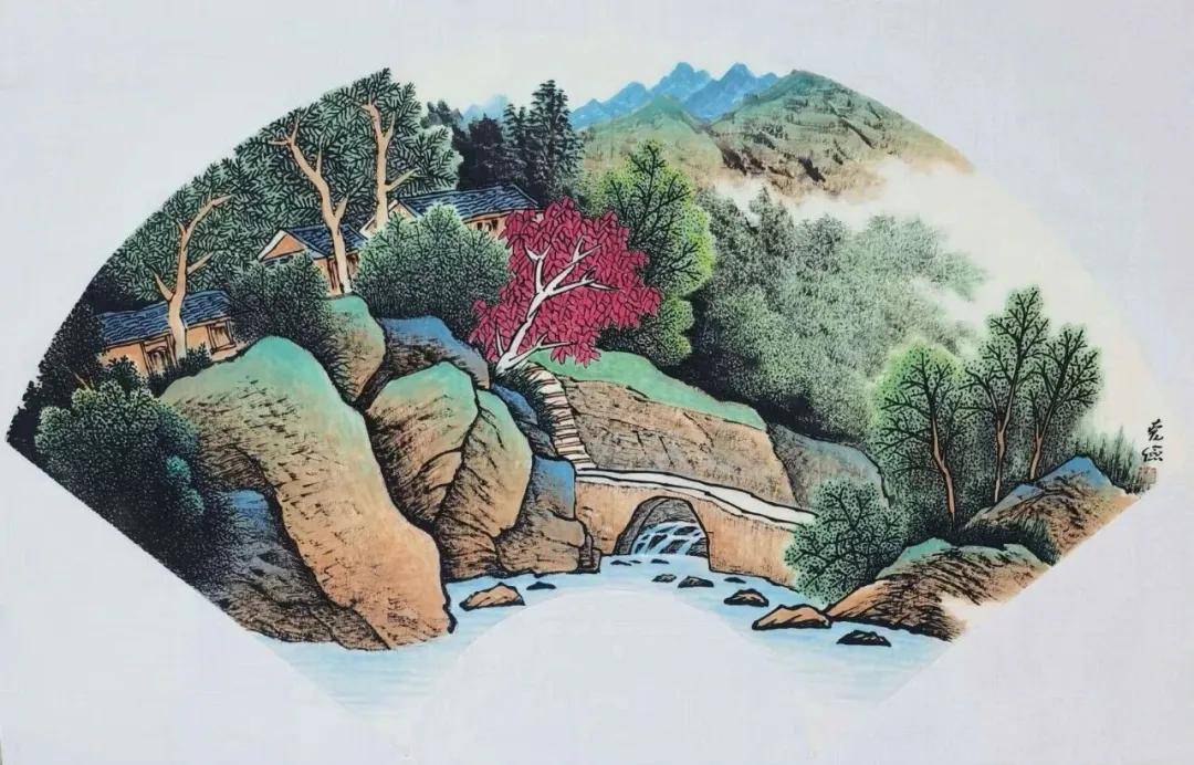 他的作品在构图上有时采用焦点透视,布局上有些画幅全篇撑满,这在古代是没有的,并采用了明显的明暗光影效果,增强了立体感。这种创新使得他的作品既保持了传统山水画的意境,又具有现代审美特征。