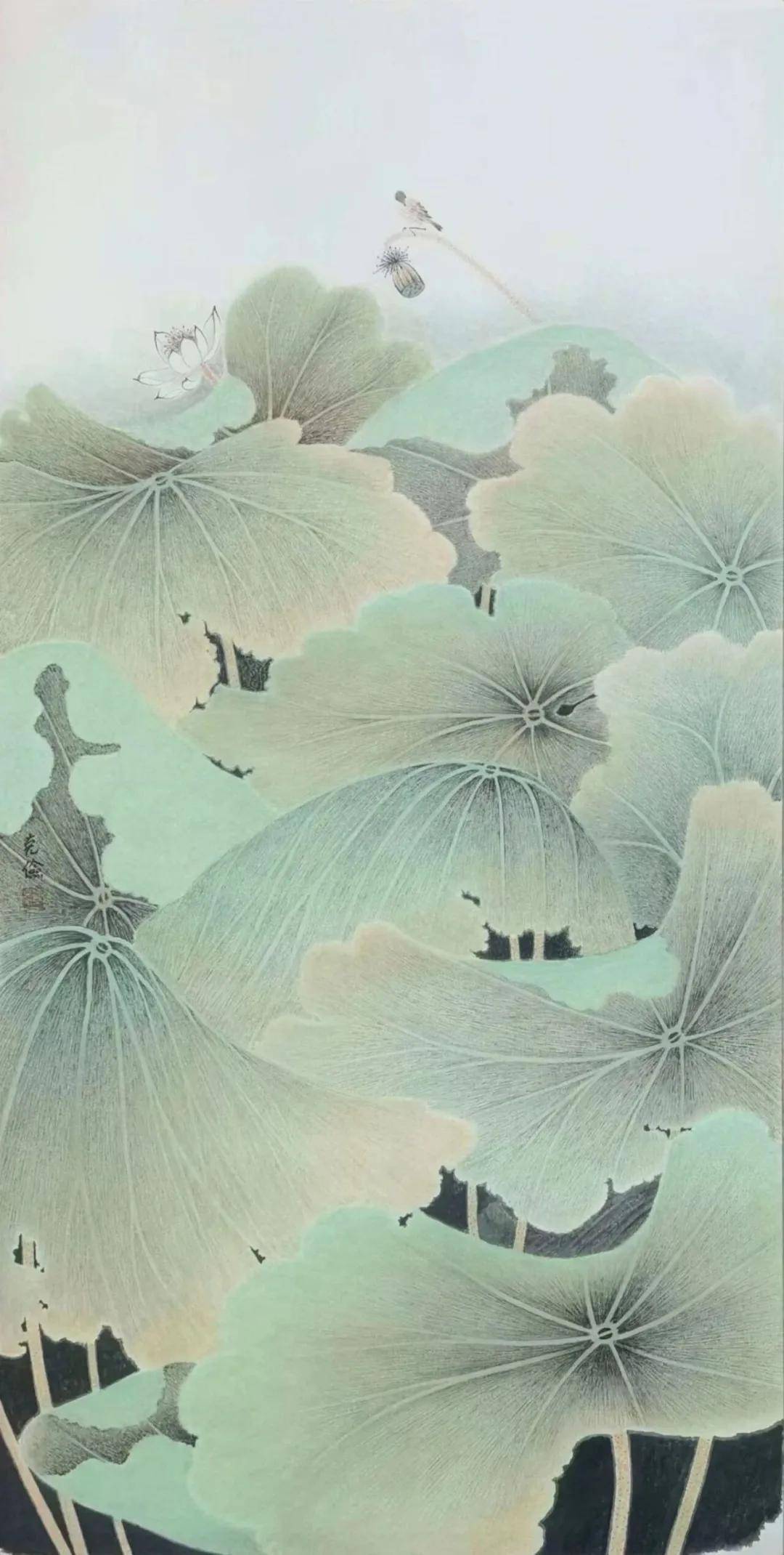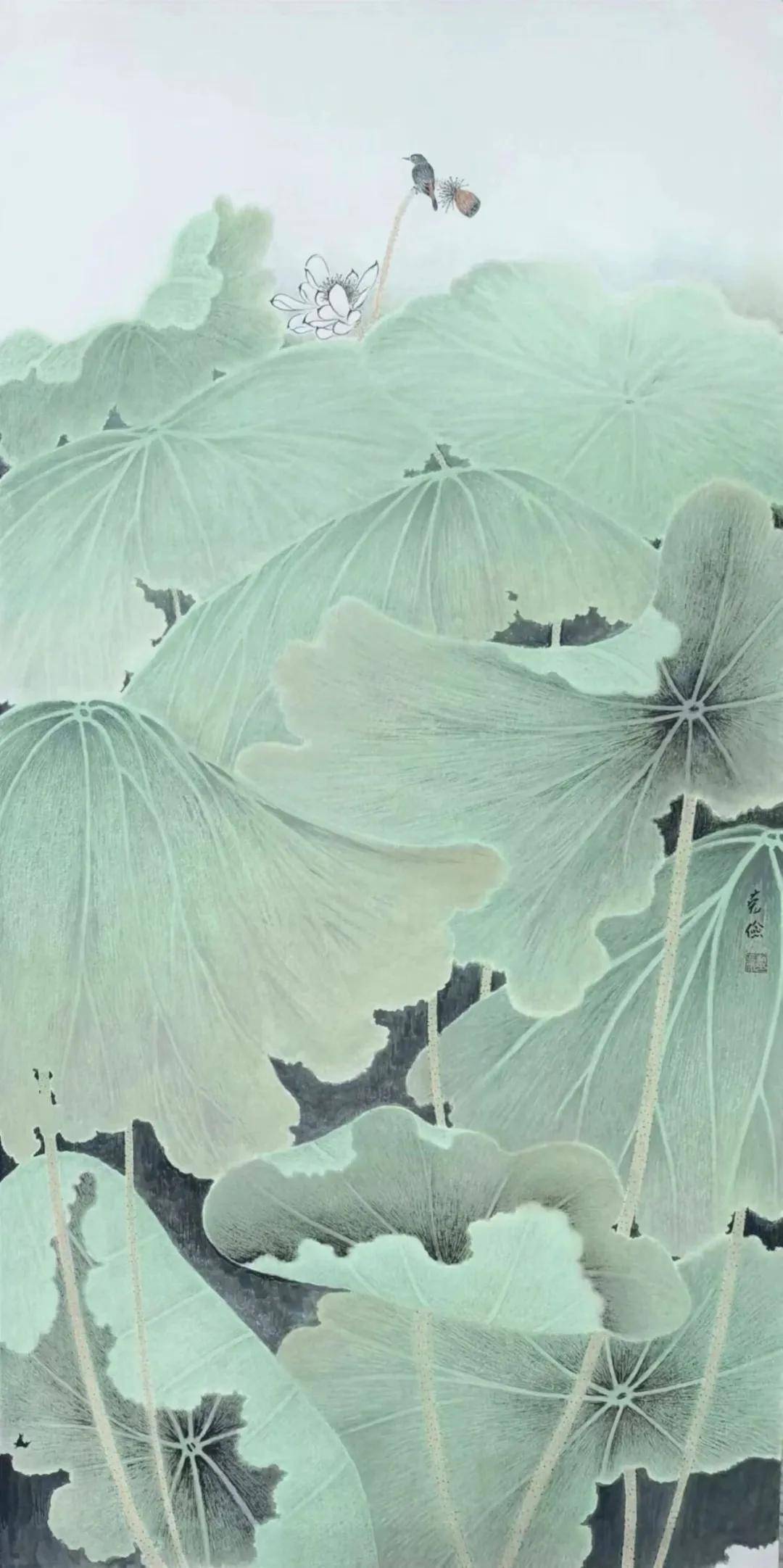 3、水墨运用淋漓:他的水墨技法干爽与淋漓并存,创造出清越或静谧的不同意境。