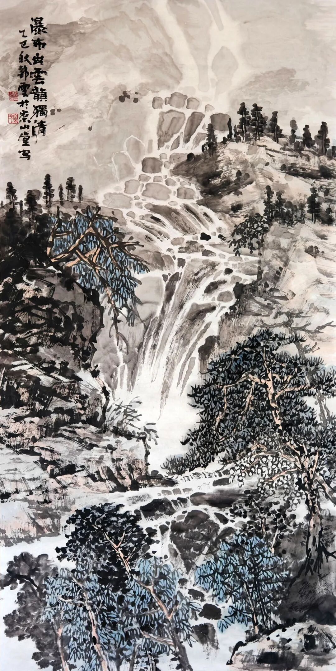 《瀑布出云韵独清》136cmx68cm