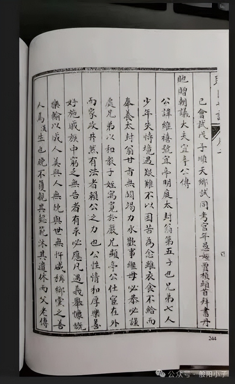 发现淄川月庄高汉承撰写的《貤赠朝议大夫宜亭公传》一文