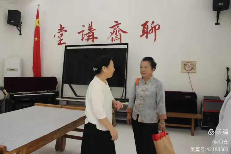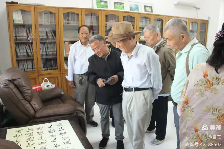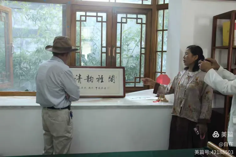 黄宽远老师情不自禁,吟诵道“室雅琴清娱耳目,诗书笔墨染情怀。”曹玉梅老师随声附和“竹径通幽共探奇,墨香犹带旧时诗。”赵老师更是抒怀“门边联语传幽意,壁上条屏漾墨香。慢赏徐行探奇趣,低头仰面指琼章。”众人纷纷赋诗,情至高处,更引吭吟唱,一派祥和。