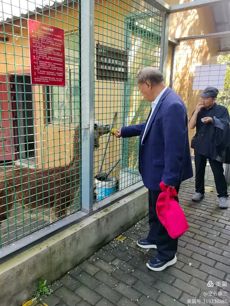 诗友们吟诗赋词,继续前行,栈道转入林间,林木愈密,光影愈柔。脚下落叶簌簌作响,偶见松鼠蹿过枝桠,衔一枚松果隐入深处,野趣盎然。入林间一开阔地是动物栖所,贪吃的驼羊,津津有味地吃着诗友们递去的香梨,半秃的孔雀艰难地亮开尾翅,展屏的刹那美丽动人。灵巧的环尾猴玲珑灵动,时而与诗友们对目,时而细嗅芳丛寻野果,时而轻攀枝桠戏风流。不时惹得诗友们开心大笑。真乃是“醉翁之意不在酒,在乎山水之间也!”