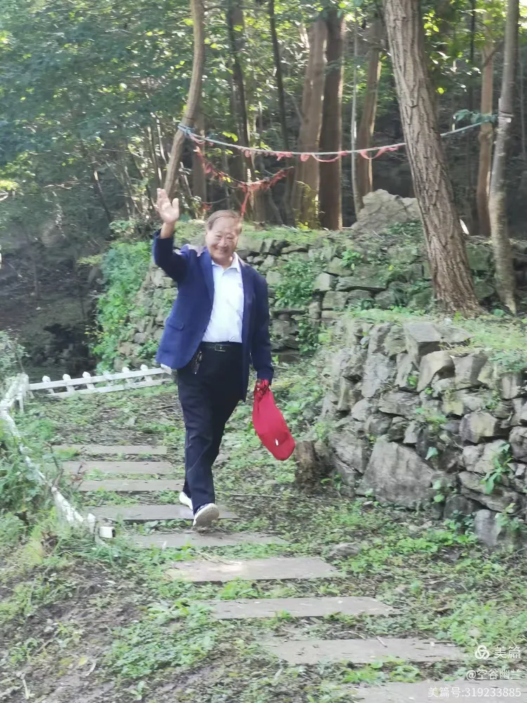 身后葱茏秋意,石下苍颜瑰质。人与自然融,数鸟语声频起。尤喜,尤喜,骚客赤情偏倚。