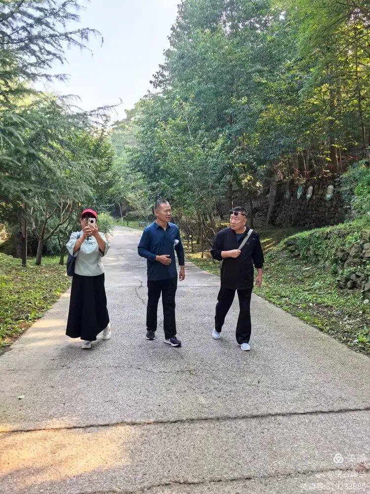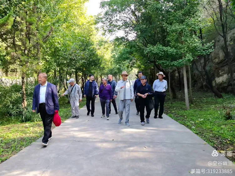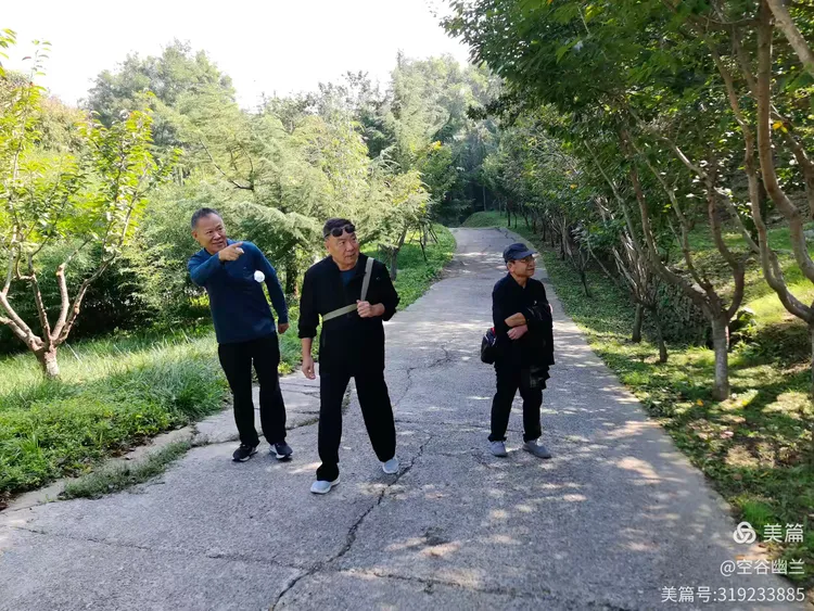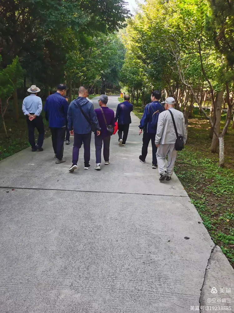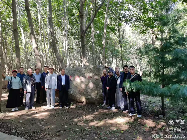 沿着林荫小道疾步而上,来到一处树木繁荣昌盛的坡地,一巨石赫然屹立,上面书写着“中国艺术家林”一一 它是一个具有文化与生态意义的景点。“中国艺术家林”于2012年4月16日在如月湖湿地公园揭牌。景点种植了柏树、柳树、松树、梧桐树等近200种树木,体现了艺术与林业相结合,共鸣了“人与自然”和谐相处的理念。诗友们在此稍作休息,谈笑风声,看着这不同种类的树木,讨论着每棵树的象征意义很高兴,也很满足!感叹着如月湖中的林场藏着如此多的奥秘!都说这样的游玩恰到好处,既锻炼了身体,又陶冶了情操。随后,一行人兴致勃勃地按原路返回。