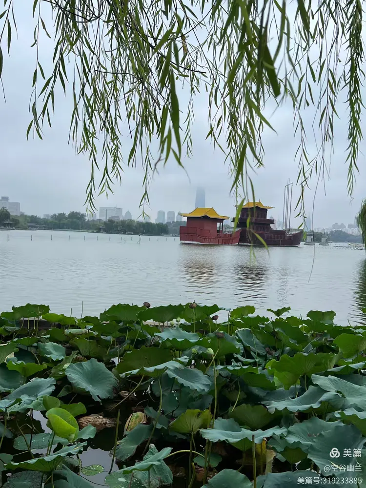 一镜湖光嵌碧岑,山环水抱月牙琴。云梳翠岫千峰秀,风拂红莲两岸深。 鸳鸯戏,鹭鸶吟,亭台小憩忘尘襟。归来犹忆波光里,半盏清欢印月心。