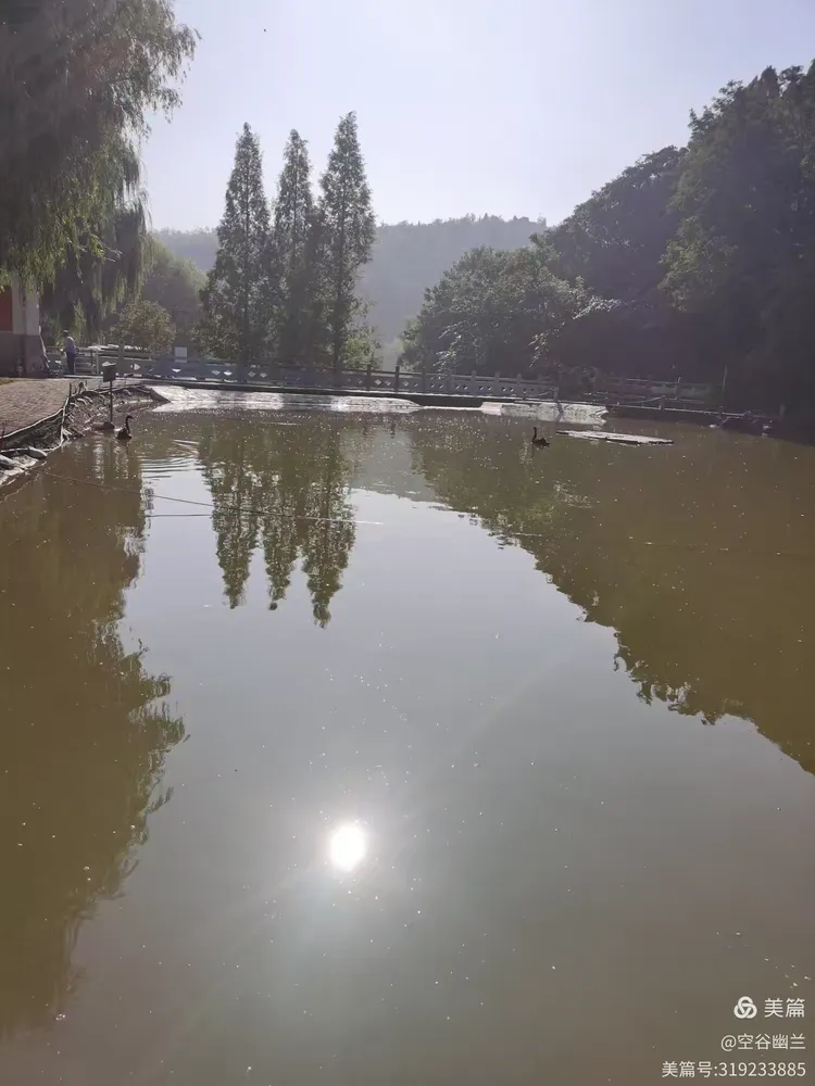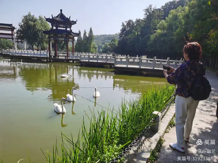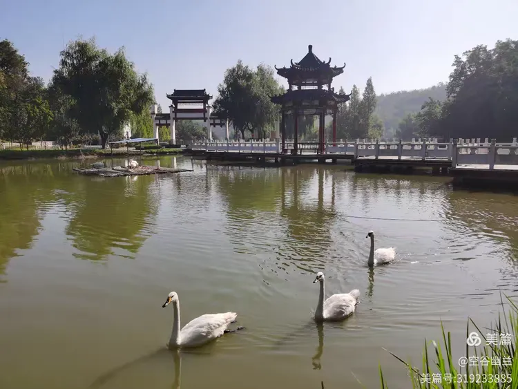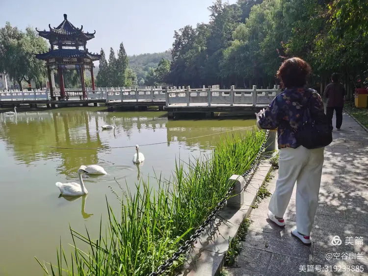 进大门抵湖岸,湖面澄澈如镜,天光云影共徘徊,山岚绕岸而行,将碧波染作青绸,偶有微风过,湖水便漾开细碎金纹,黑白天鹅悠闲戏水,沿湖栈道徐行,左侧是粼粼波光,右侧是茂林修竹,竹影婆娑间,时有蝉鸣穿叶而来,白天鹅与黑天鹅相映成趣,我买了一包鸟食,投入水中,湖中天鹅相继觅食,时而列队觅食,时而分散觅食,时而与水声相和,竟是天然的乐章……我们也乐在其中。