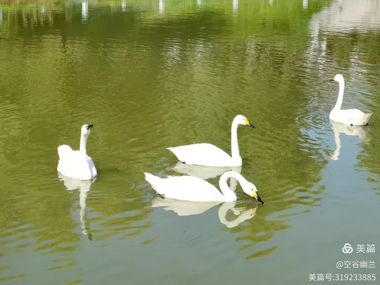 对舞天鹅双黑白,抢粮金鲤共沉浮。