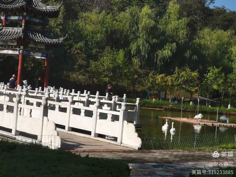 如月湖上步天桥,天鹅仙鹿伴诗家。