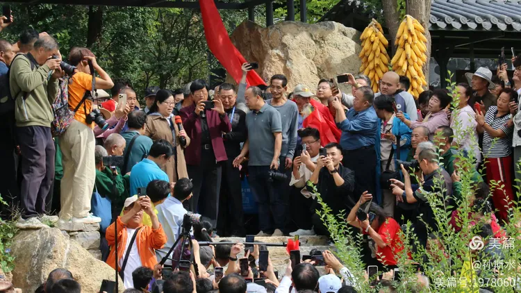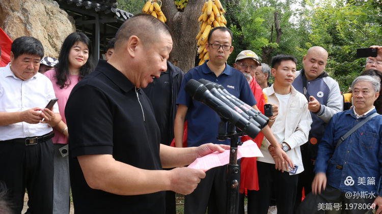 临时搭建的主席台上,各方宾朋已陆续就位。焦波先生身着深色休闲装,立于中央,时而与身旁嘉宾低声交流,时而与主持人沟通细节,沉静的身影中透着对盛会的深切期许。仪式依序展开:东道主天津湾西村党总支书记、村委会主任焦守礼首先致辞;随后,源泉镇党委书记李晓剑,中共博山区委常委、宣传部部长李林,淄博市摄影家协会主席皇甫晓文等嘉宾先后登台。他们的话语不仅是对来宾的欢迎与祝贺,更是对这份乡土情怀与人文精神的崇高礼赞。