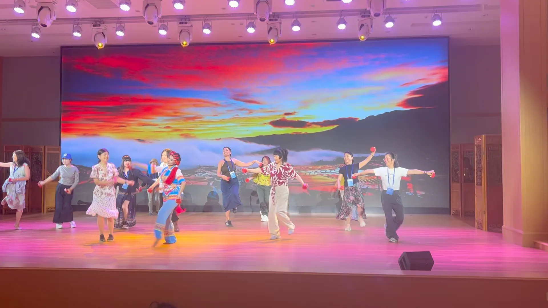 香奈儿与彝族演员一起表演烟盒舞