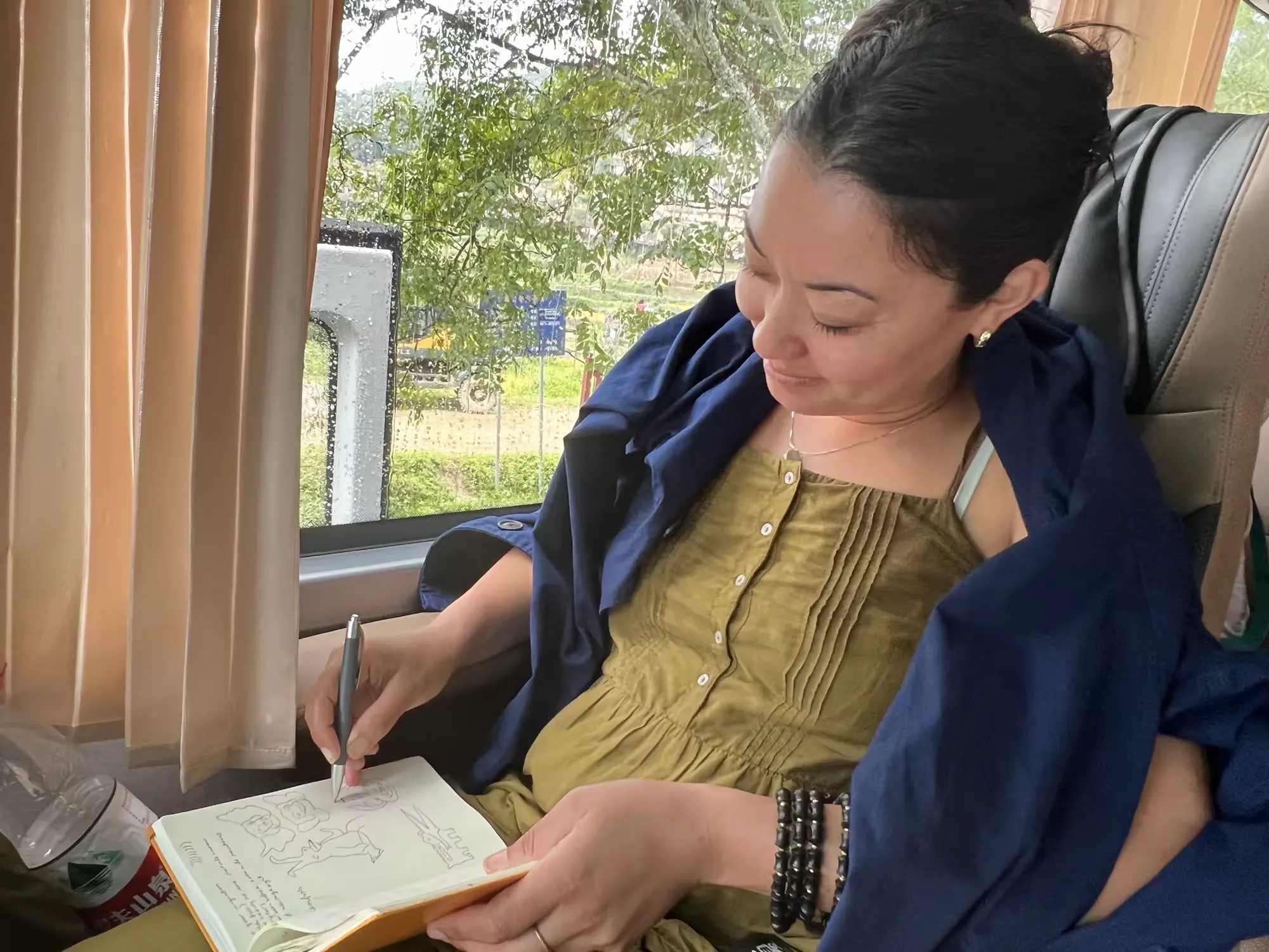 香奈儿在大巴车上写发言稿