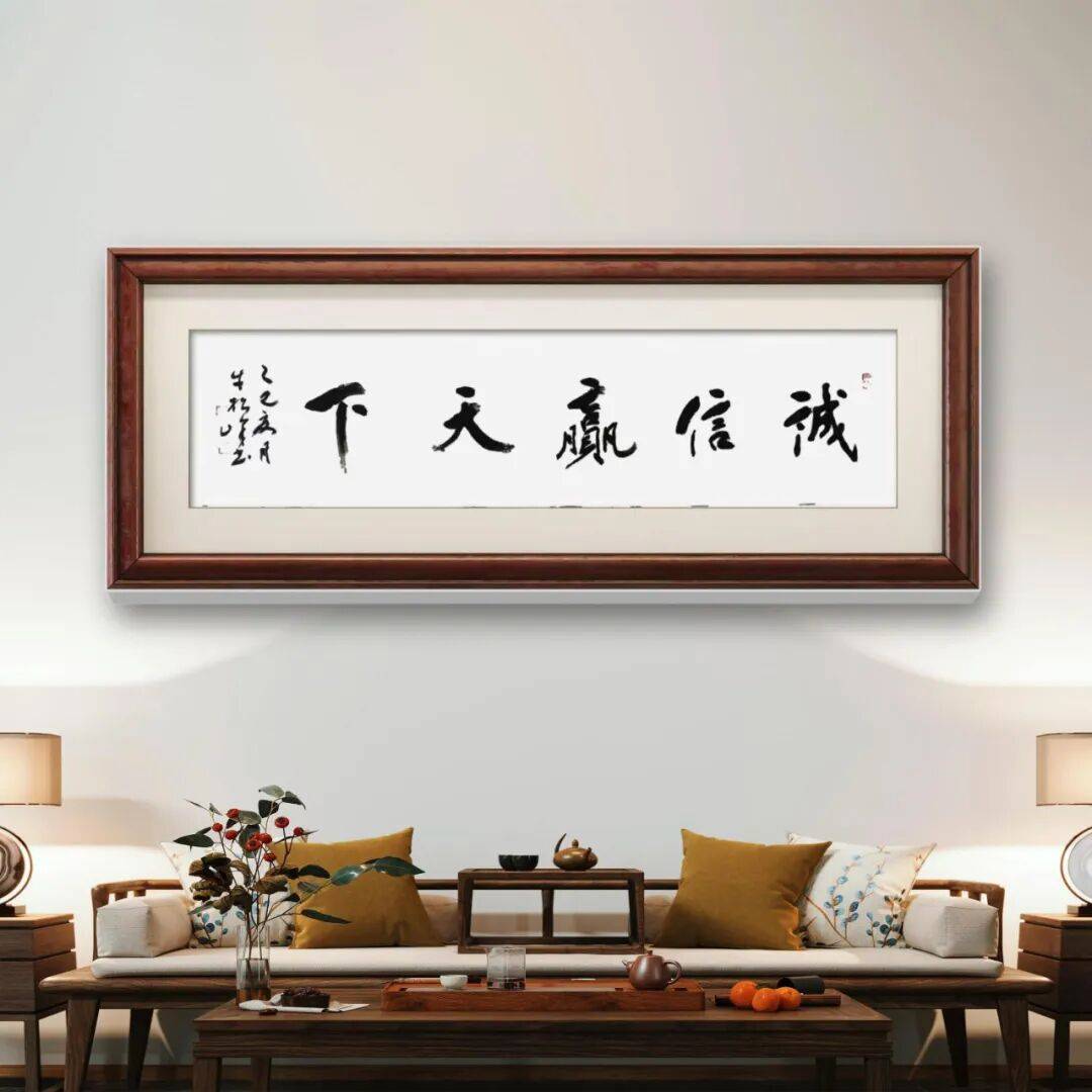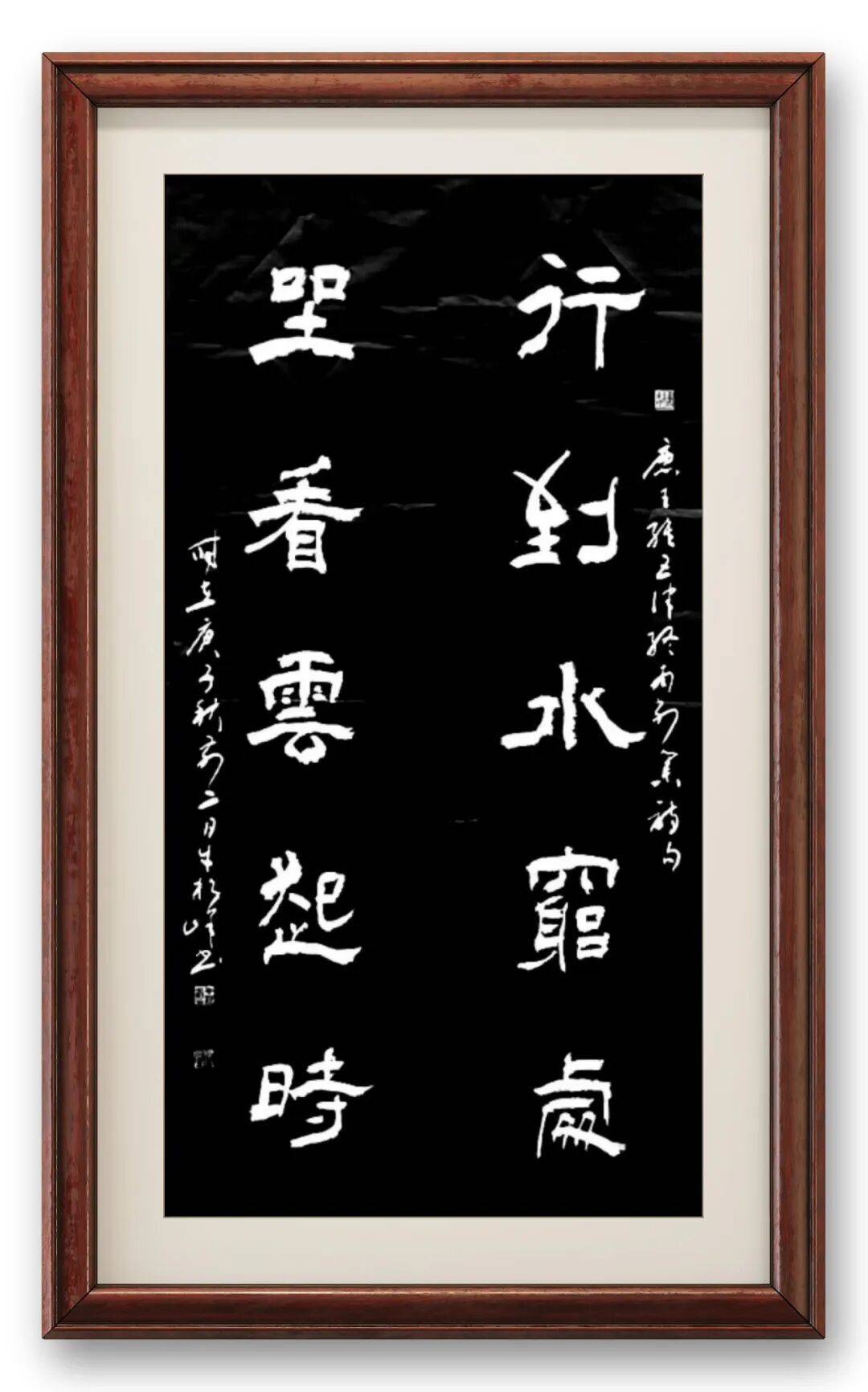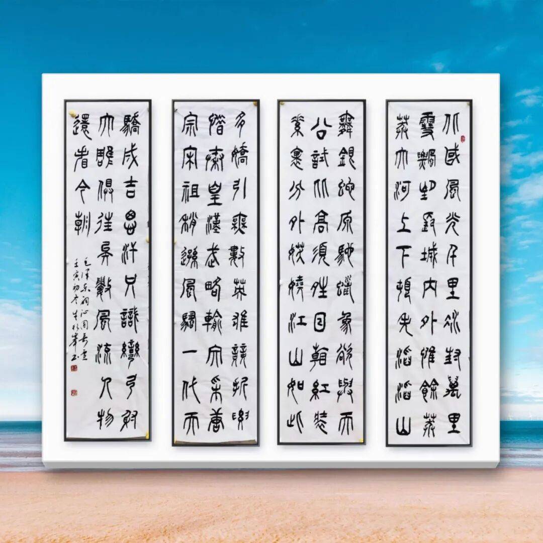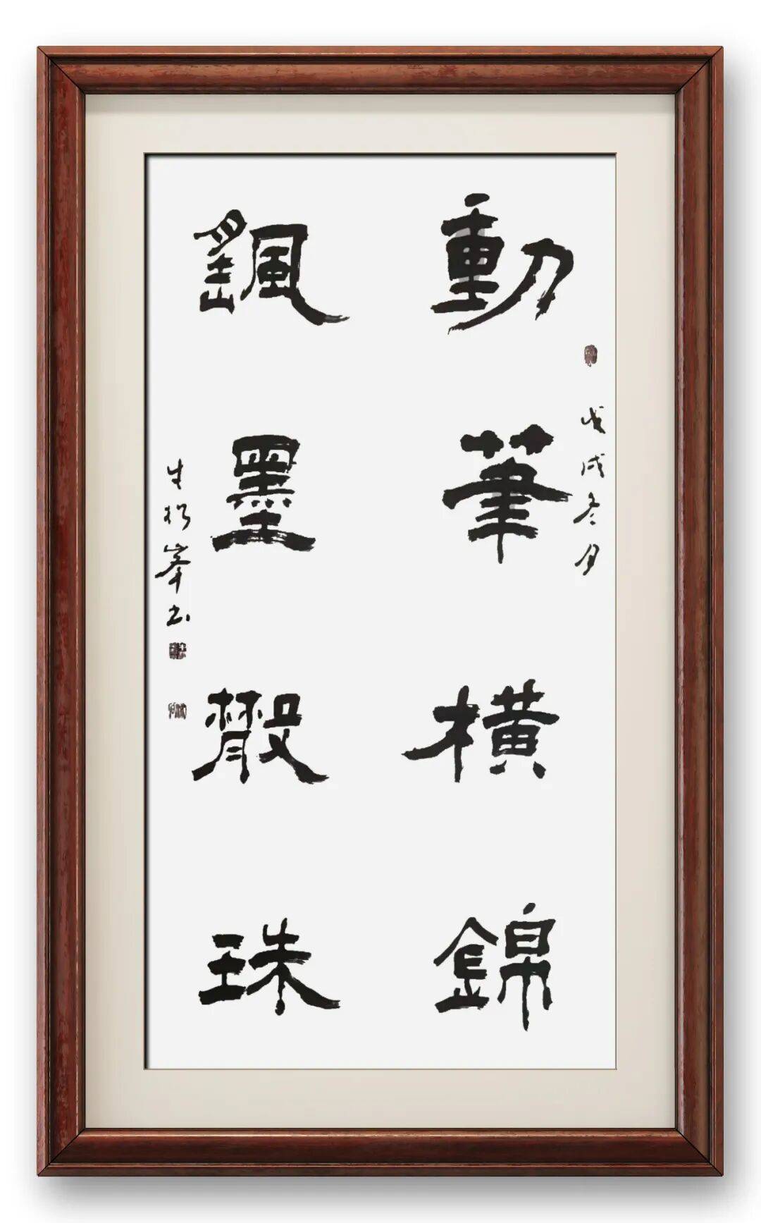 牛松峰先生的隶书作品则体现出牛先生对传统书法的敬畏与传承。其隶书,取法汉隶,笔画古朴厚重,蚕头燕尾,特征鲜明。作品中,字形宽博,气势恢宏,将汉隶的端庄大气与古朴典雅展现得恰到好处。他在隶书的创作中,既注重对传统技法的继承,又融入了自己的理解与创新,使得作品既有古意,又具时代气息。
