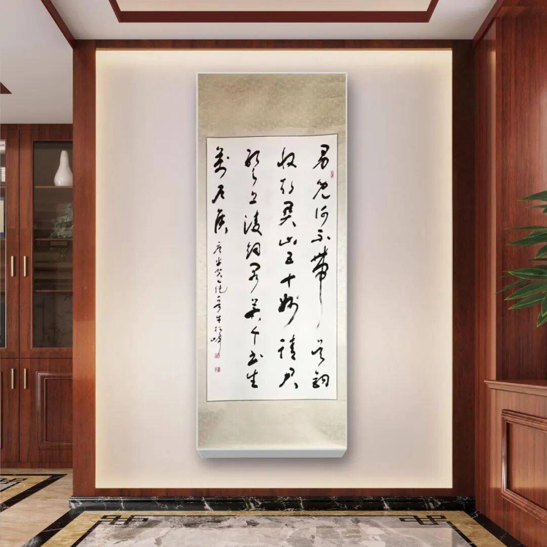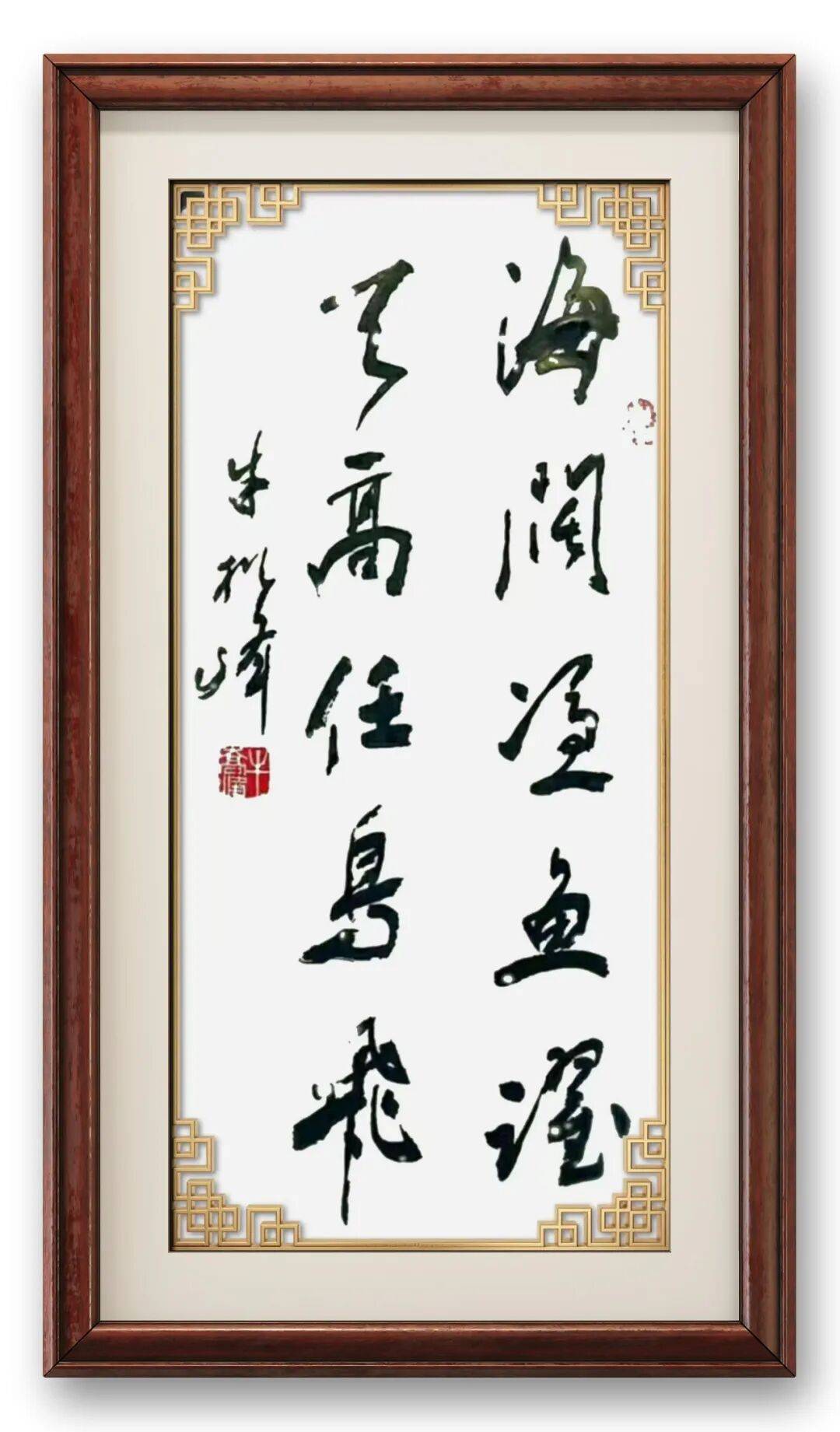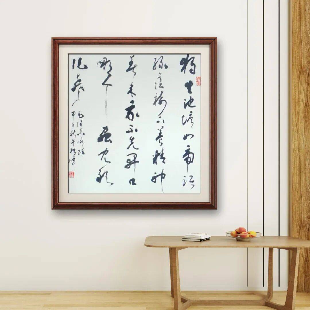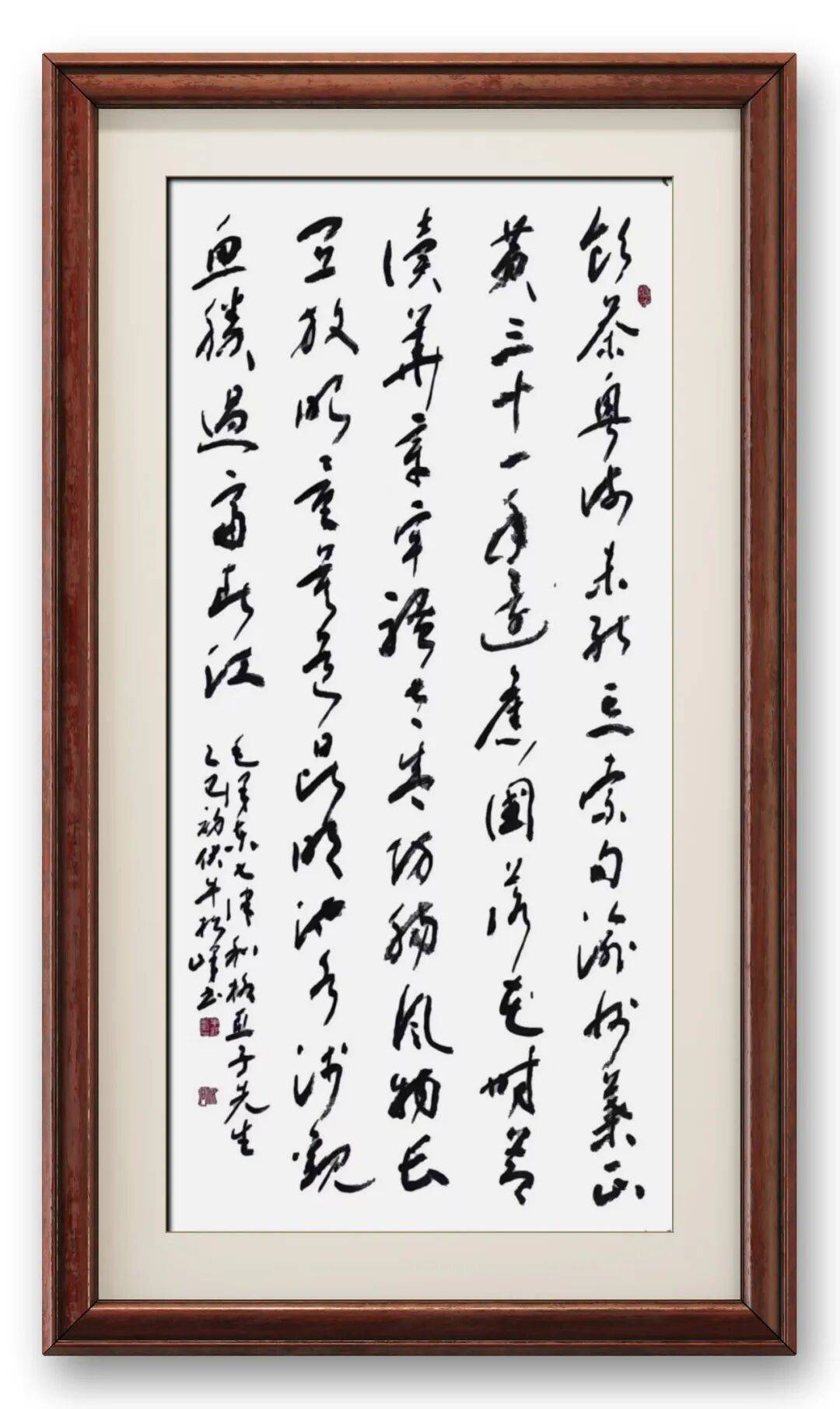 草书是书法艺术中最具表现力与抒情性的书体,牛松峰先生的草书,更是将这种艺术特质发挥到了极致。其草书作品,笔走龙蛇,气势磅礴。笔画的连绵缠绕,如狂风骤雨,又似惊涛骇浪,充满了动感与力量。在狂放的笔触之下,却又有着内在的秩序,并非是毫无章法的肆意挥洒。他对草书的结构与笔法有着深刻的理解,能够在自由奔放的创作中,把握好每一个字的形态与整体的布局,让观者在感受其激情与豪放的同时,也能领略到草书艺术的严谨与精妙。