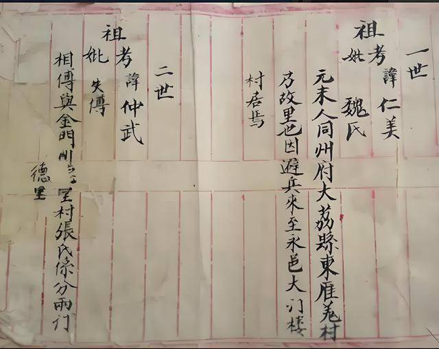 ②据清道光二十七年(1827年)大门楼村张捷科所撰(大门楼)《张氏家谱》记载:“(大门楼张氏)一世 祖考讳仁美,妣魏氏,元末人,同州府大荔县东雁羗村乃故里也,因避兵来至永邑大门楼村居焉。”