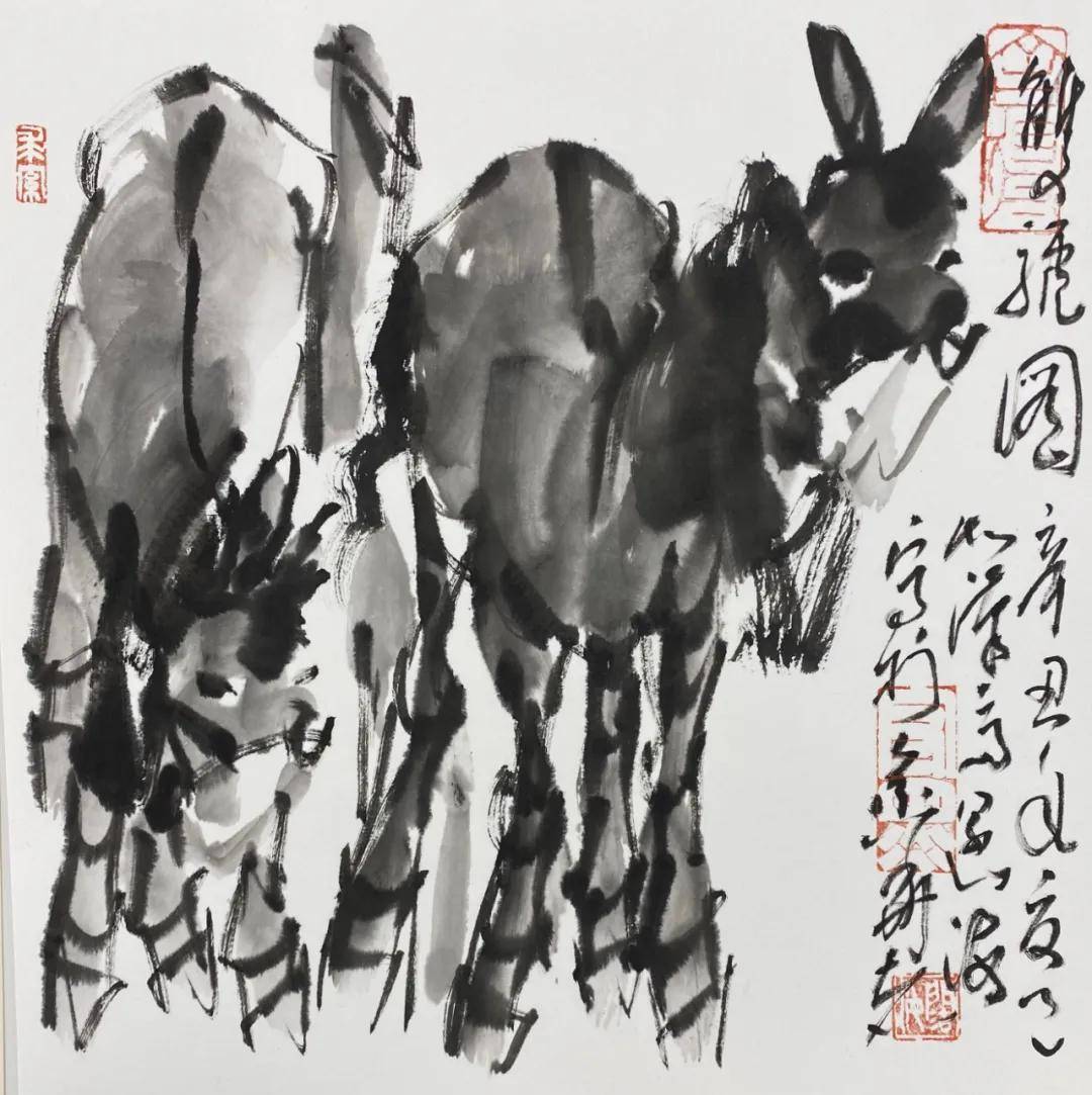 历史与现实题材是新汉画品牌的“压舱石”,从早期的《土枪土炮》《峥嵘岁月》到后来的《飞夺泸定桥》,王阔海始终以笔墨记录时代、致敬英雄,这些作品多次入选全国美展并被中国美术馆等机构收藏,奠定了品牌的学术地位。动物画系列则成为其品牌的“流量入口”,其笔下的十二生肖兼具写实精度与写意韵味,被评论界认为“超越前人”——“丑牛敦实舐犊,犹过李可染;寅虎雄壮威风,笔墨超张善孖”,这种对传统题材的突破性演绎,让高端艺术走进了大众视野。而山水花鸟作品则展现了其艺术品牌的“文人底蕴”,将汉画的雄浑与文人画的清雅融为一体,如《踏雪寻梅》在水墨氤氲中透着古雅书卷气,进一步丰富了其艺术品牌的美学层次。
