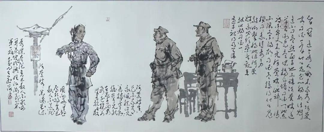 艺术品牌的价值最终要在社会语境中得到体现,脱离时代的艺术难以产生持久影响力。王阔海先生的创作始终与时代同频:改革开放初期,他以《土枪土炮》记录历史记忆;新时代,他以《飞夺泸定桥》致敬英雄精神;疫情期间,他以速写传递人间温情。这种“以笔墨书写时代”的创作态度,让新汉画品牌始终保持着鲜活的生命力。这启示我们,艺术品牌必须扎根时代土壤,回应社会关切,在与大众的情感共鸣中实现价值升华。