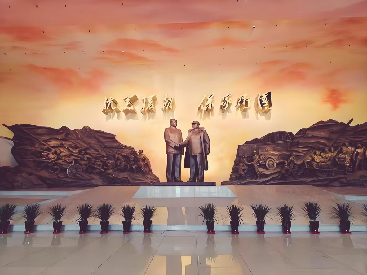 二月梅在描绘抗美援朝纪念馆时,展现了出色的场面调度能力。他先用简练的笔法勾勒出纪念馆宏大的整体外观:“灰黑色的建筑群依山而建”,“纪念塔,像一柄出鞘的利剑,直指苍穹”,营造出肃穆、崇高的氛围。继而,他将镜头推近,聚焦于中央大厅毛主席与彭德怀元帅握手的巨型雕塑,并对这一场景进行了极富感染力的解读。作者没有停留在外形的描摹,而是深入挖掘这“一握”所蕴含的千钧重量——“握住了一个重大战略决策的坚强自信”,“握住了一个新成立国家的胜败安危”……这种由形入神的写法,将静态的雕塑赋予了动态的历史张力和深刻的象征意义。