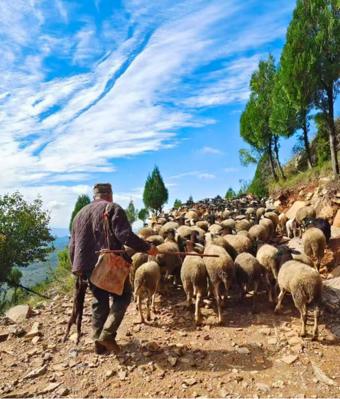 我们与老汉在山峰西面的山脊上就要分别了,老汉问我们去哪里?我告诉他去大佛寺。他很善良地给我们指了条下山的路。