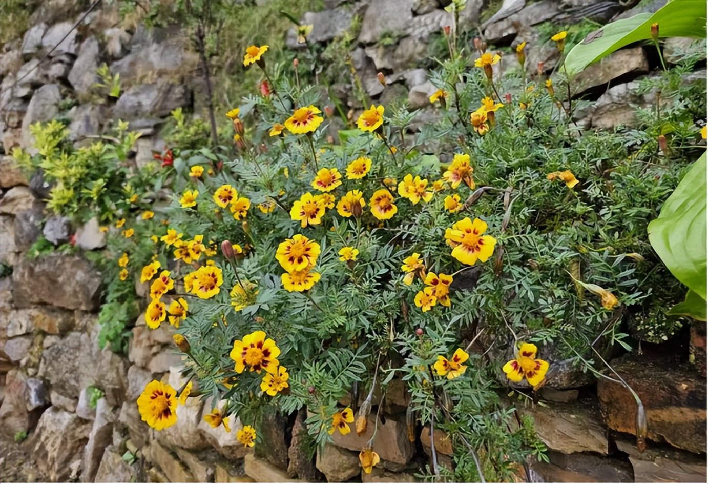 路边紫、白、黄等五彩斑斓的野花也争先恐后地跳入眼帘,像是争秋似的。尤其是山菊花,品种真不少,经过连续多天雨水的洗濯,无论是单棵的,还是成丛的,都分外精神,妩媚迷人。