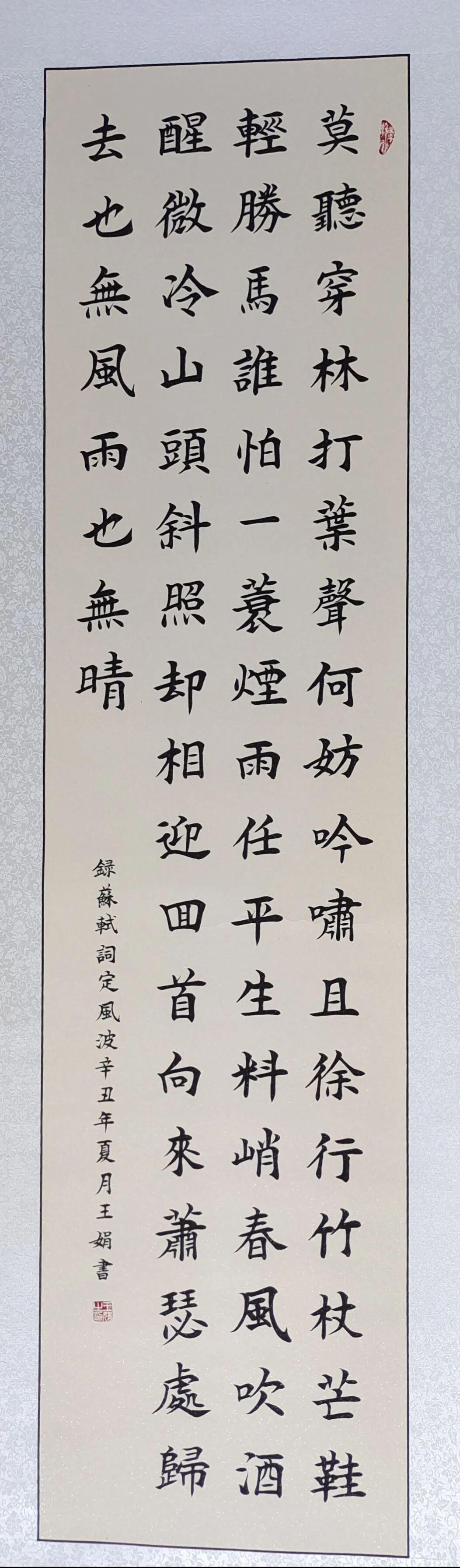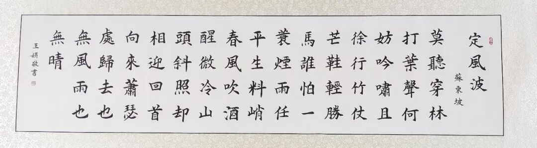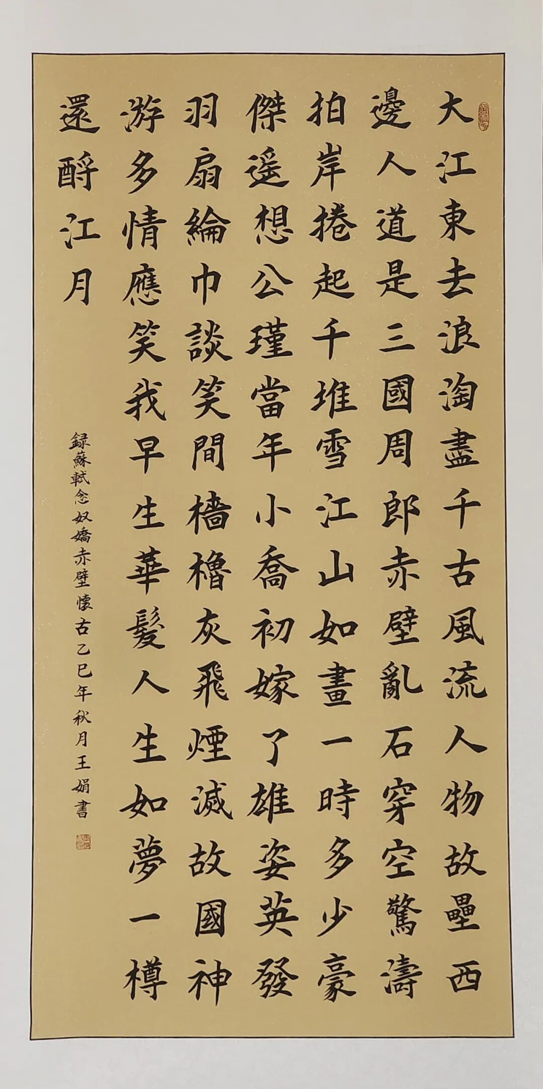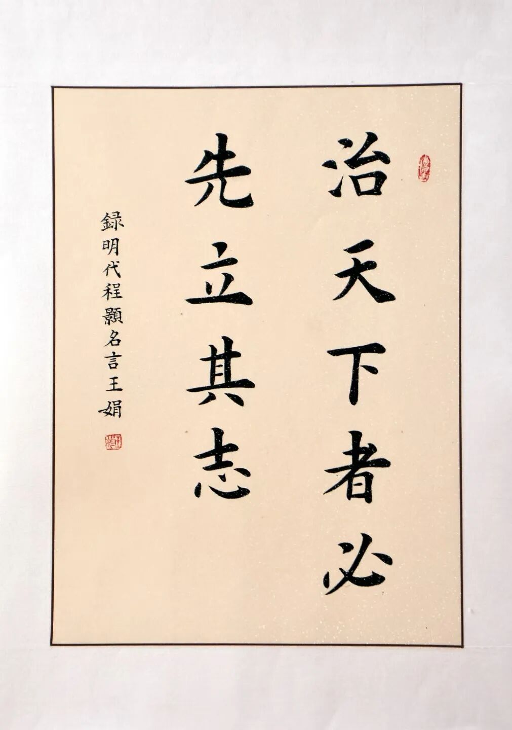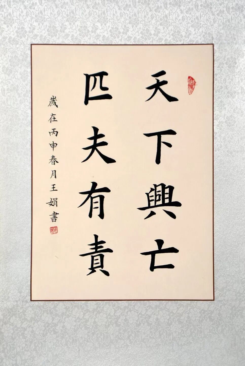 王娟,擅长楷书,学习欧阳询、颜真卿、黄自元、田英章等大家之书法,经过多年的艰苦磨炼,汲取圣贤名师之精髓,大胆创新,努力形成自己的风格。