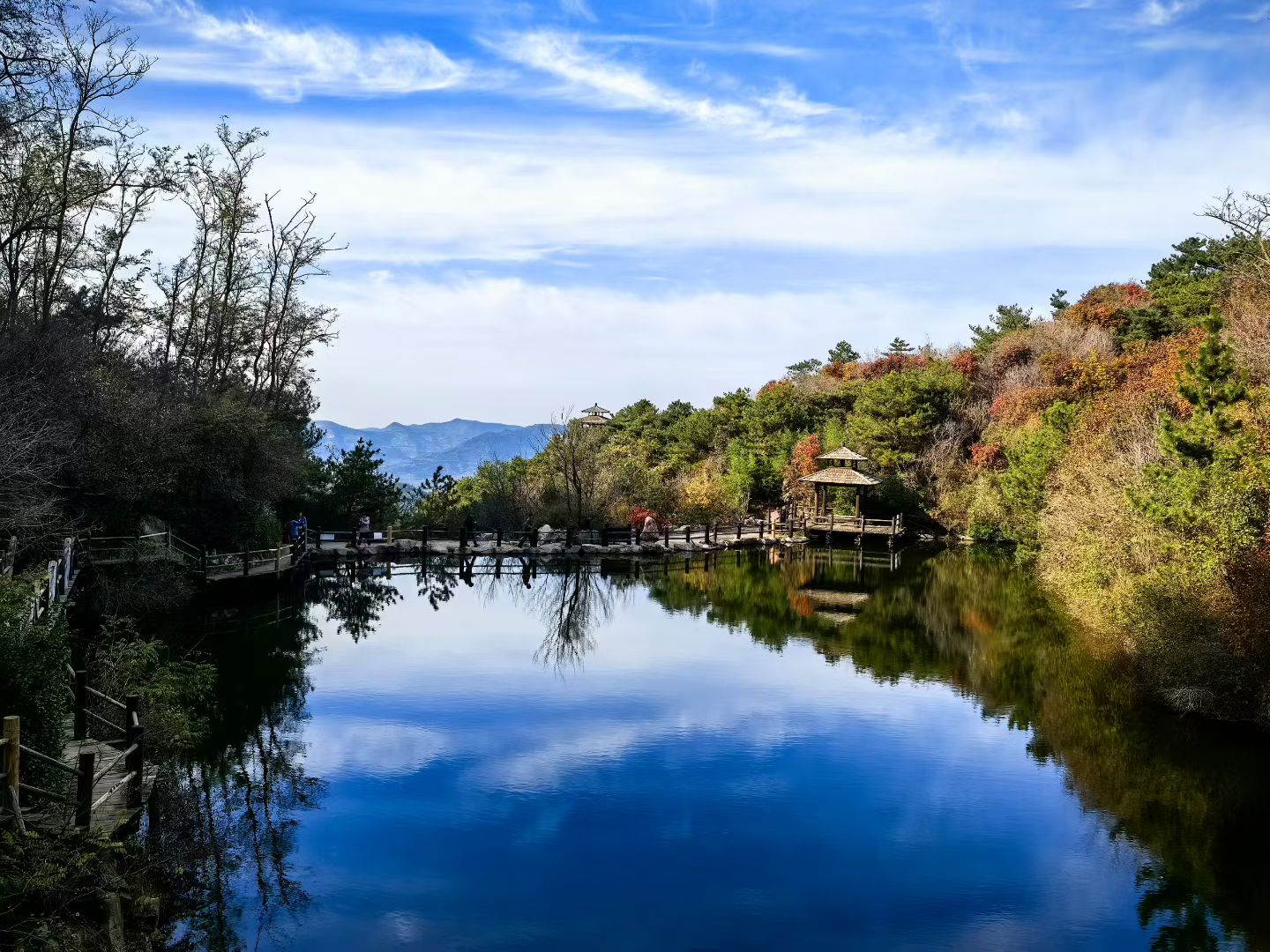 秋日的九如山,是一位褪了红妆却披上霓裳的仙子。我去时,她刚将满山枫火敛入大地怀中,只留下万顷澄澈与千种斑斓,在十月的风里舒展一卷天地丹青。