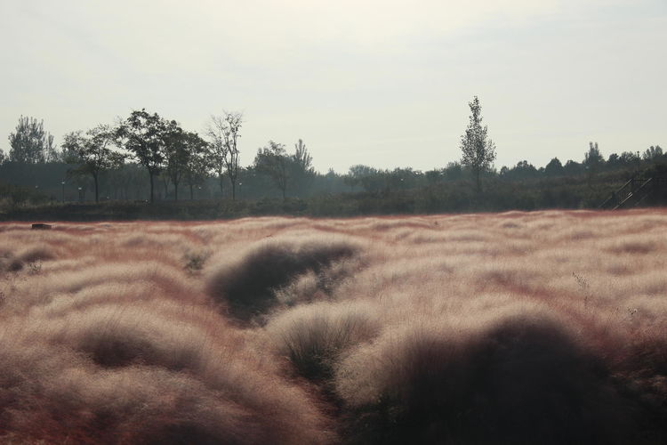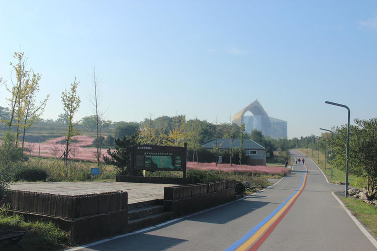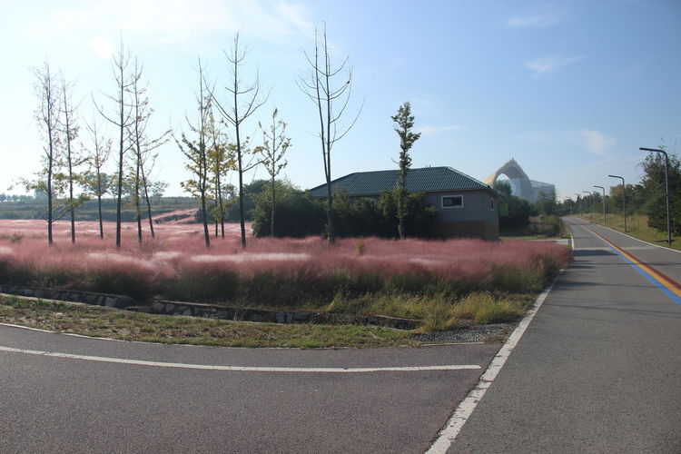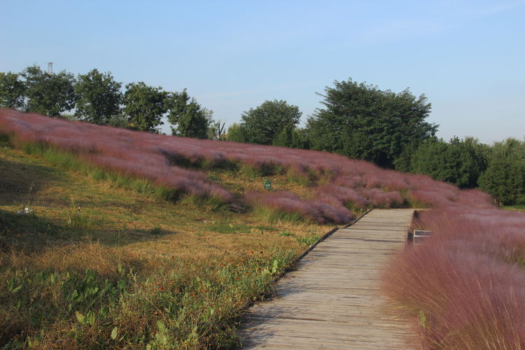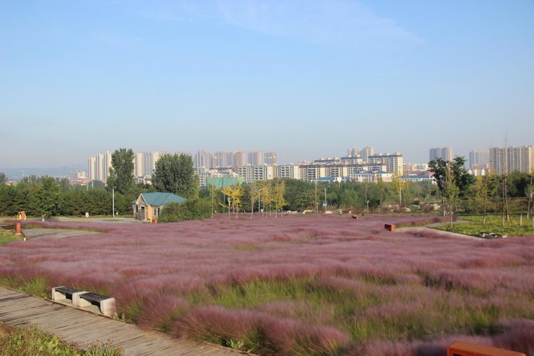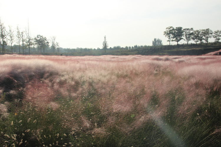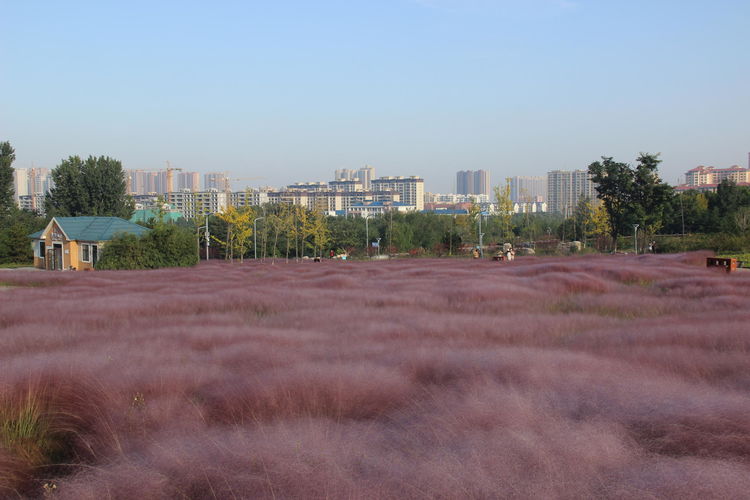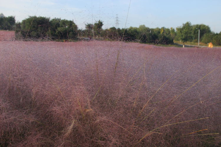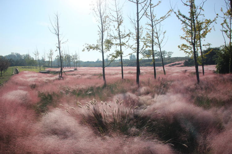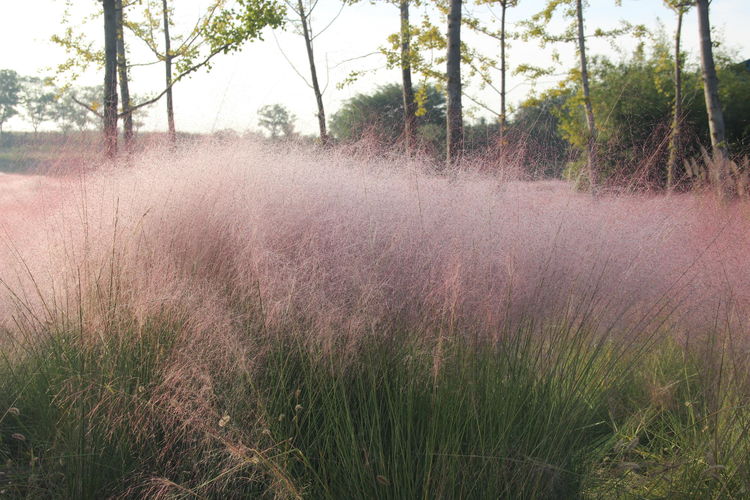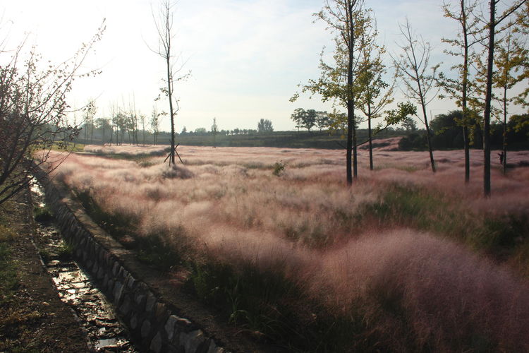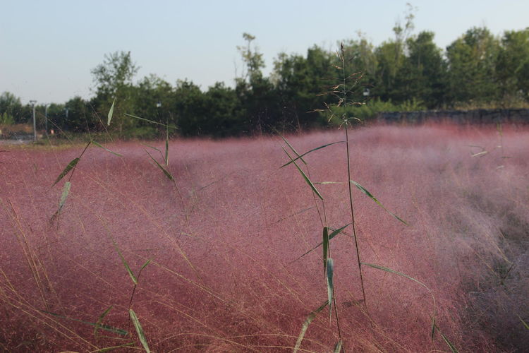 几株苇儿与月季,努力挺直了身躯,直立于红粉世界里,一副不服气的样子。近看,还能看到它们的身形;远观,它们统统都被淹没在粉红色之中。