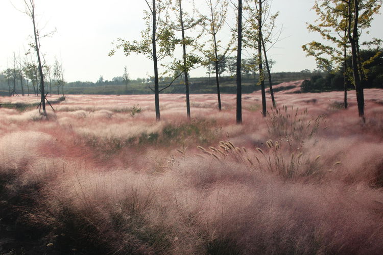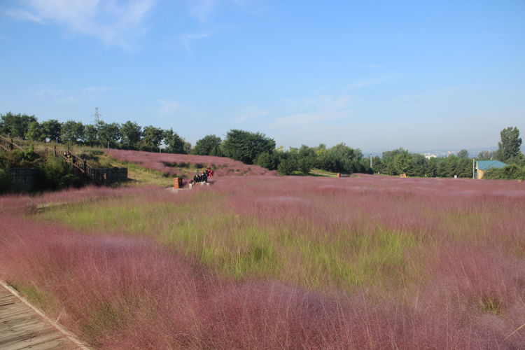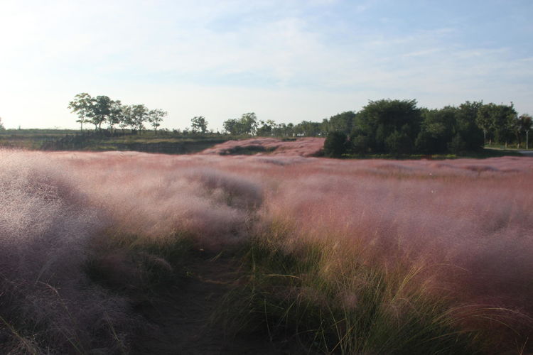 一块小小的充满仙气的丝巾,变身粉黛子,占据了几亩地大的山凹,映红了周围的一切。你只要看上一眼,绝对会感觉到这就是涌动的云霞、流淌的红瀑、奔放的红色浪花……