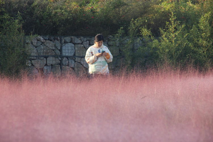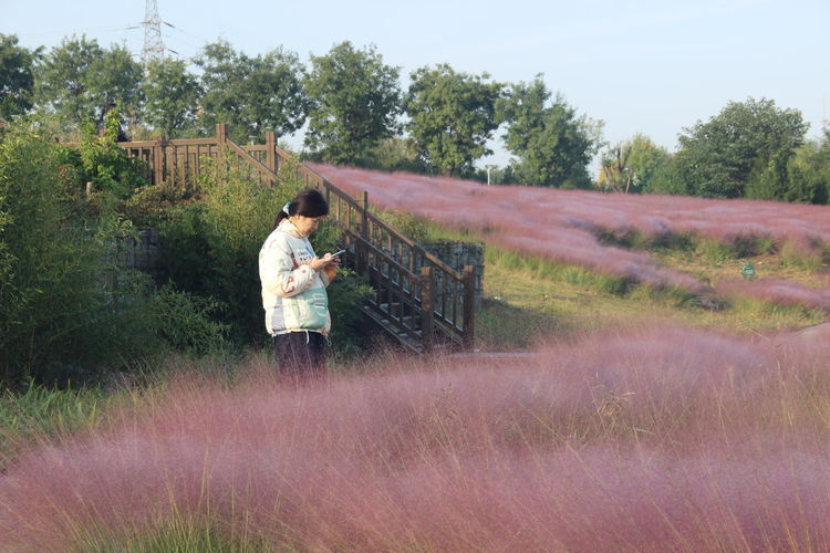 还有那美女,手机在手,神情是那么的专注。是自己刚刚发的视频得到了美赞,是在屏息凝神地拍摄之中,还是在向远方的朋友做着介绍……凝目里充满了笑意。