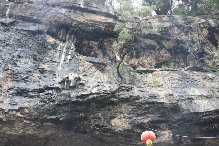 抬头望,黝黑的山岩,好似抹了油似的,岁月与苔藓从来不曾停歇过雕琢。突发奇想,这黑色里,该会不会有着先人们在茹毛饮血时期,柴火熏烤的痕迹。