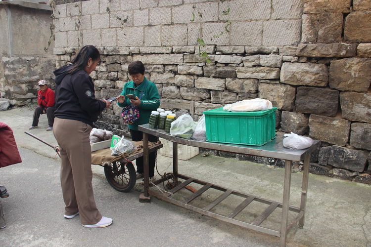 有人来取水了。看到他们拿起一根管子就往桶里灌,这应该是常客。他们不是村民,是开车来的城里人。