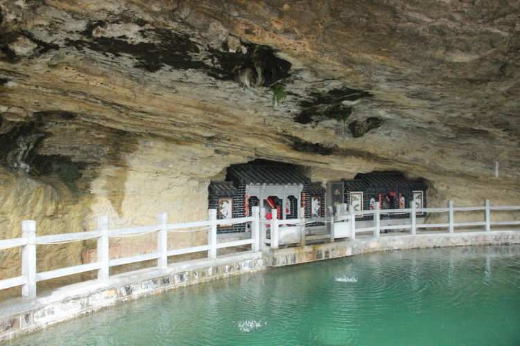 天工开物,以往看到的溶洞都是封闭式的,而眼前的竟然是被自然的力量纵切开来的,一个半圆形的空洞,有着黝黑的穹顶,洞内的一切豁然视之。