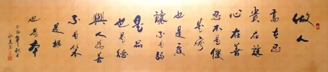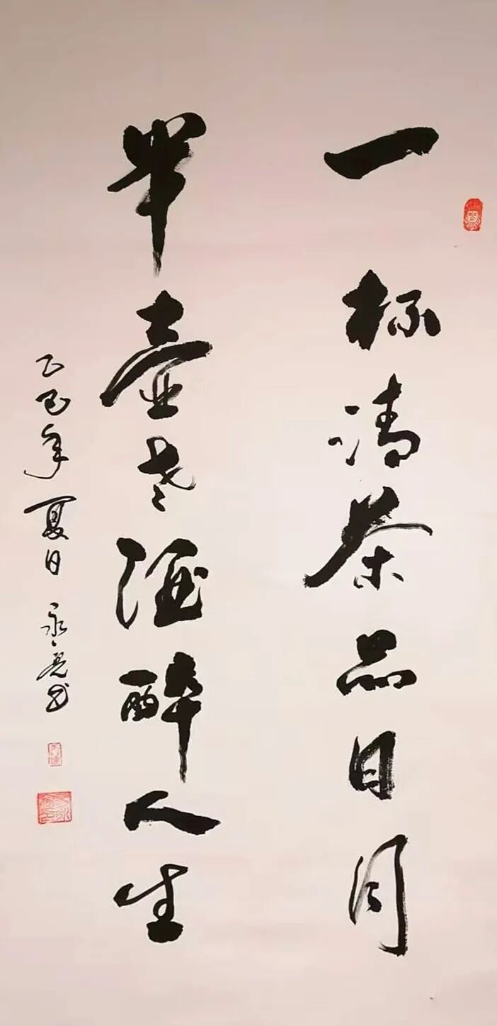 翰墨书道,首重人品,本人提笔挥毫数十载,自然也是深谙此道,其人品修养受益于太极法门,并以周易文化为背景,取号“天行健”,意在书法与之同源,是谓书肇于自然,夫神在形似之外,而形在神气之中也!