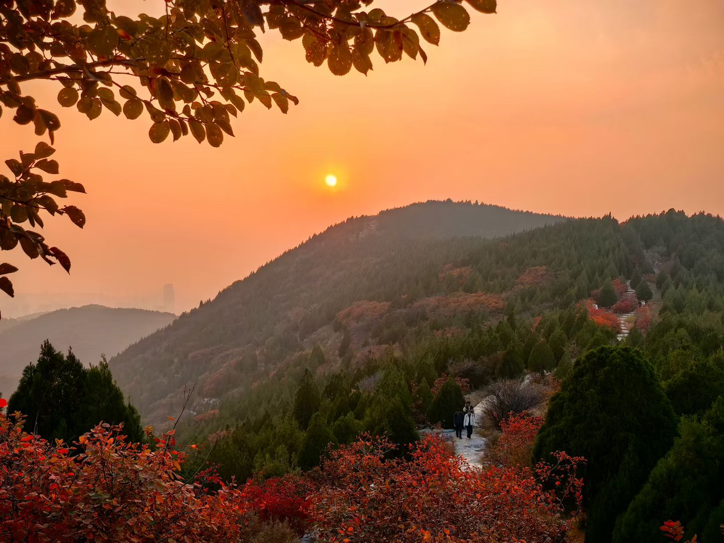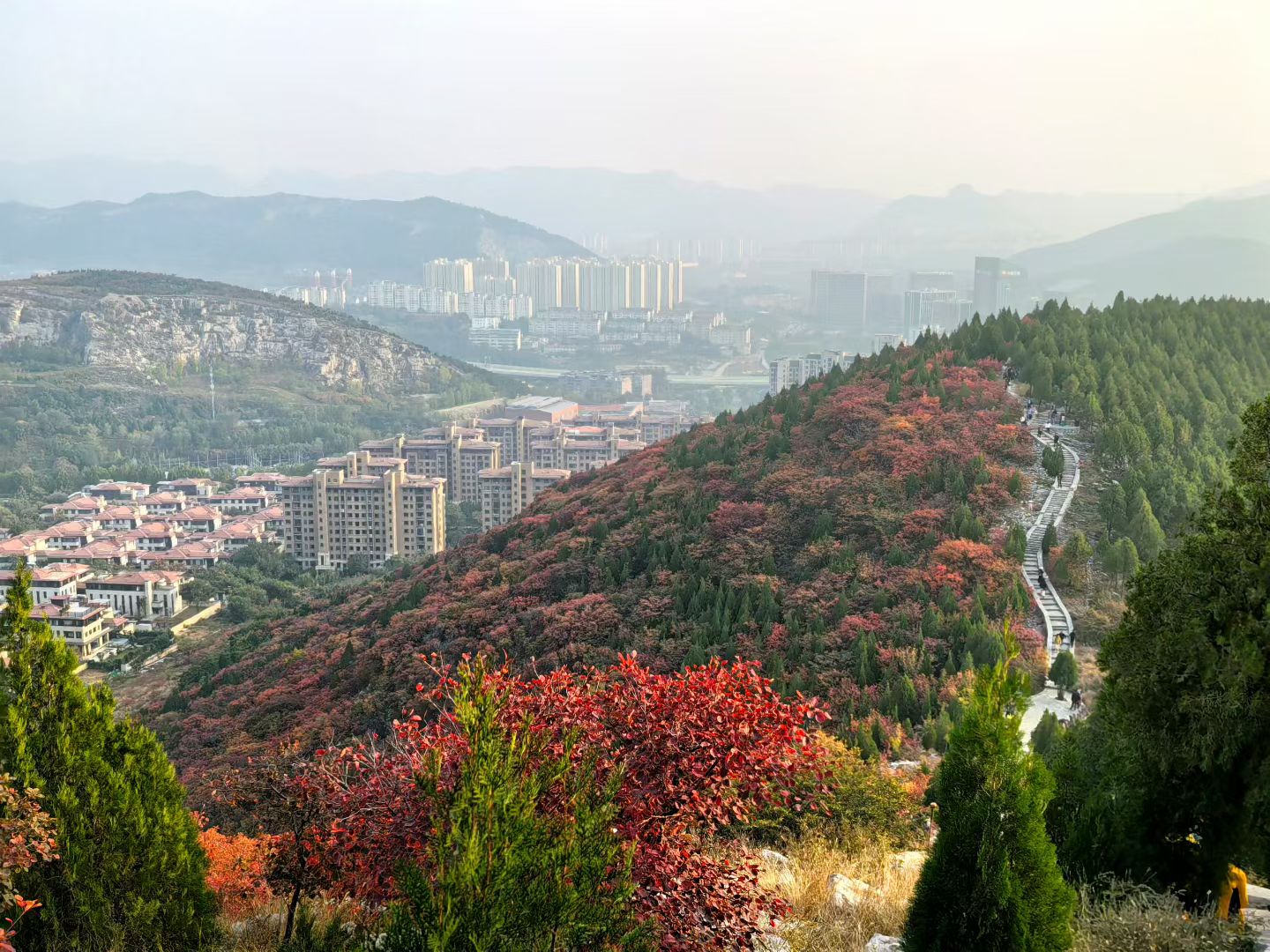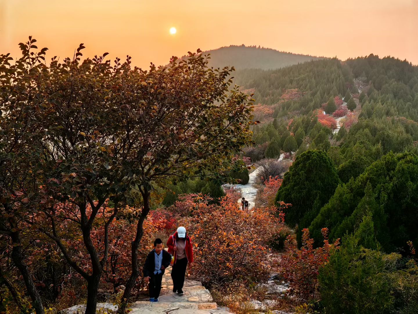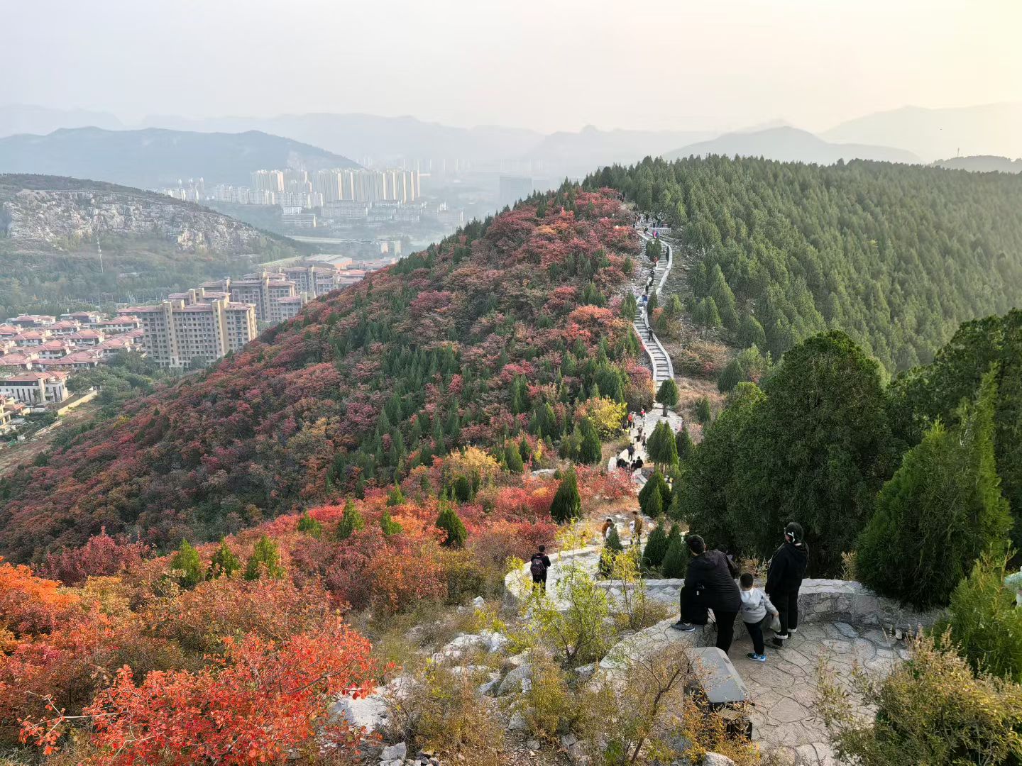 蚰蜒山,这座匍匐在济南城脊背上的山脉,当下,正以最浓烈的笔触挥洒秋的绝唱。山路在松柏与黄栌的夹道中蜿蜒,“平分秋色”,恍若踏入王维笔下“荆溪白石出,天寒红叶稀”的意境,只是这里的红叶不是萧疏的几片,而是泼天的盛宴。