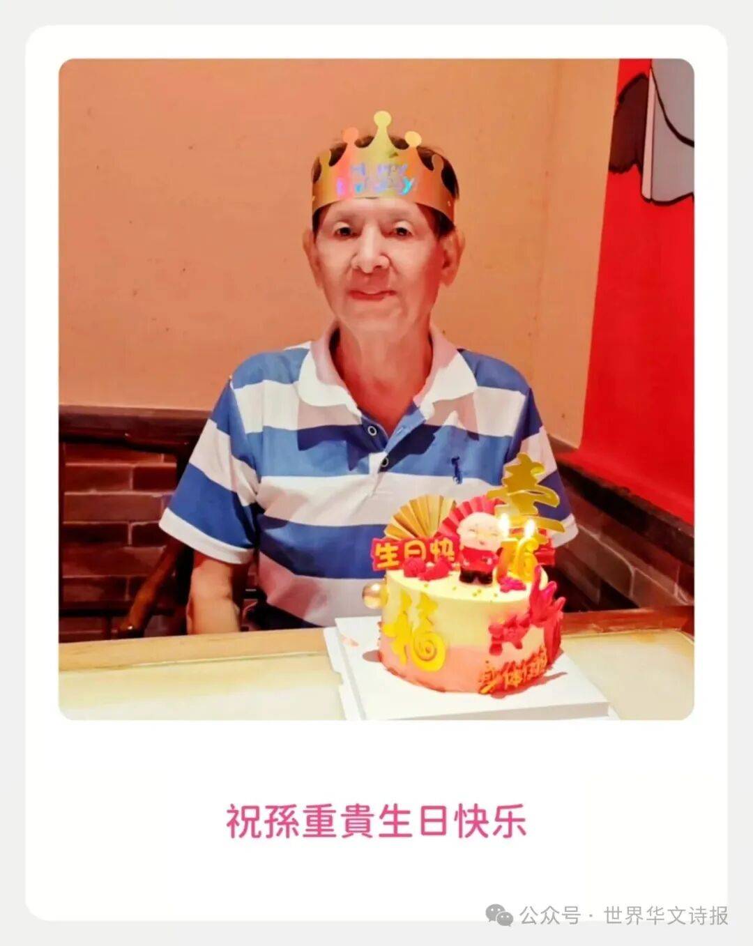 前言 : 2025年10月15日,是香港诗人孙重贵的生日。原本想与往年一样平平常常度过,然而一首诗的出现,却让这次生日变得零舍不同!