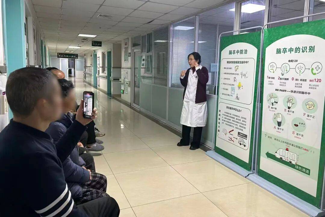 神经内科一病区以病区为阵地,深化对住院患者及家属的卒中知识宣教,定期组织健康讲座,由资深专家面对面授课,从卒中的危险因素、预防方法,到识别技巧、应急处理流程,层层深入讲解,用通俗的语言破除认知误区,让“科学防卒” 的理念渗透到每一个细节,营造出全员关注卒中、主动预防卒中的浓厚氛围。