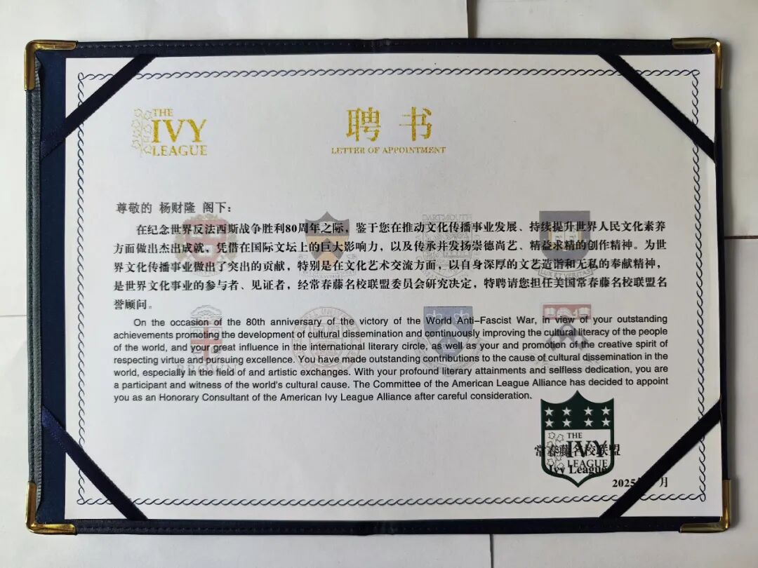 更让我深有所感的,还有先生所作的《天下第一心经》,这幅书法不仅在艺术层面堪称书学典范,更是在心灵层面具有着能够安顿人心的力量。书中笔意从容,结构舒和,观之如清泉涤尘、春风拂躁,能在纷扰日常中引导观者回归内心的宁静,只需静观默读,便能获得心灵的抚慰与精神的滋养,实为不可多得的艺术珍品!书学至高,墨海无涯,杨财隆先生的书法造诣,无疑是当今书坛内的一块净土,他追求着传统贤才的精神至境,更践行着“书如其人”的艺术真谛。每一次挥毫,都是自我精神的丈量;每一幅书法也都是其艺术人生的真实写照。如此斐然的书法成就,不仅令国内同仁由衷敬佩,在国际文化舞台上,更是形成了极其深远的书法影响力!