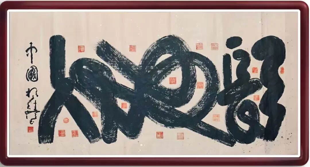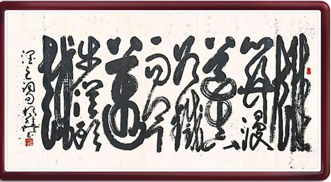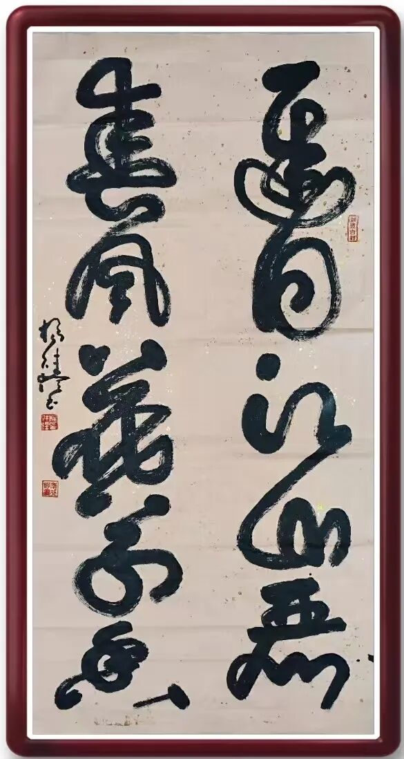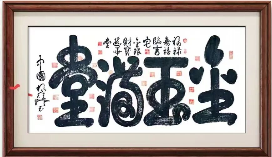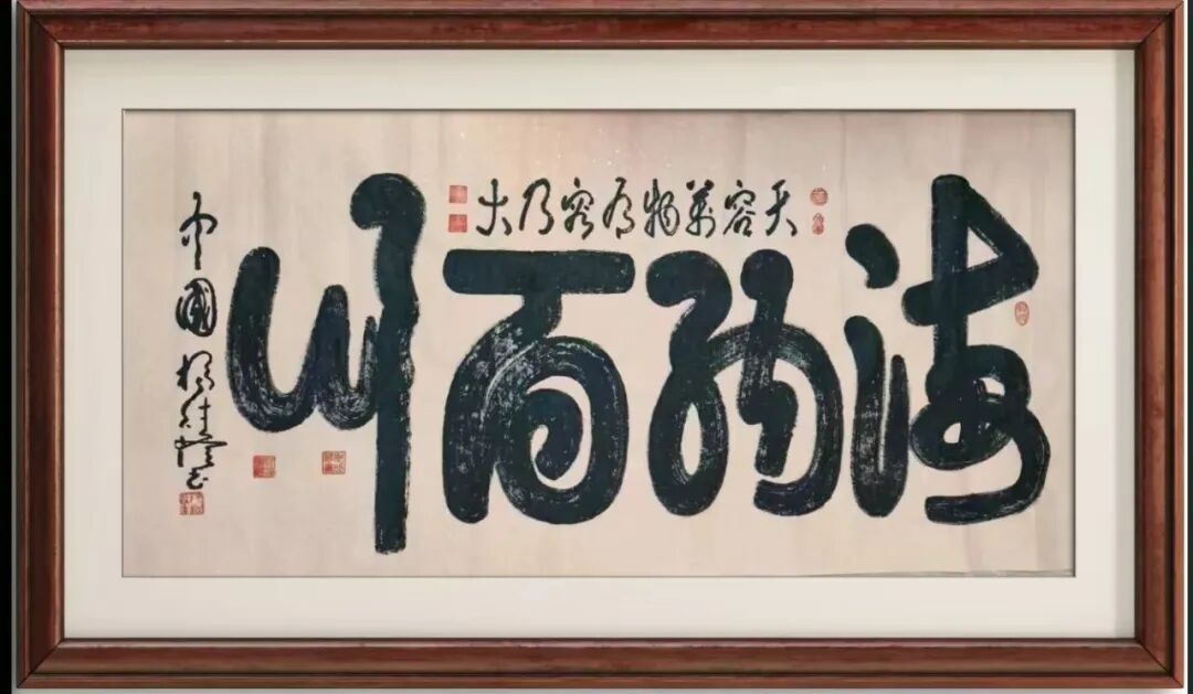 观杨财隆先生之笔墨功夫,更应体察其笔墨背后深厚的文化修成。数十载提笔从容,先生从不屑以炫技为能事,而是始终致力于汲取古典文化之精粹,涵养心经之内蕴。其书法信手挥洒,丝毫不露刻意匠气,仿佛每一笔都是经过了心源升华,从而自然流露出了一种苍劲与圆融相得益彰的文人书风。尤其在榜书创作中,杨财隆先生更是构建出了一套独具韵味的取势体系。斗笔蘸墨,厚重而行,不追求形式上的险绝跌宕,亦不作外在矫饰,而是唯以豪迈精神贯注全篇。笔下所书,是胸中浩然之气;墨中所显,则是精、气、神浑然一体的大家境界!